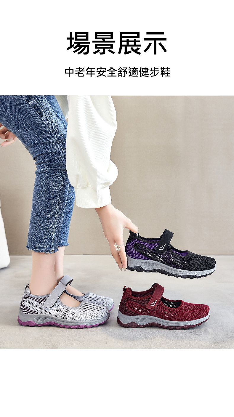 女士舒適涼爽透氣健步鞋【買一送一】【黑紫色】+【棗紅色】各一雙