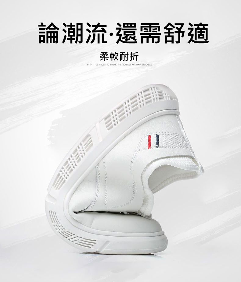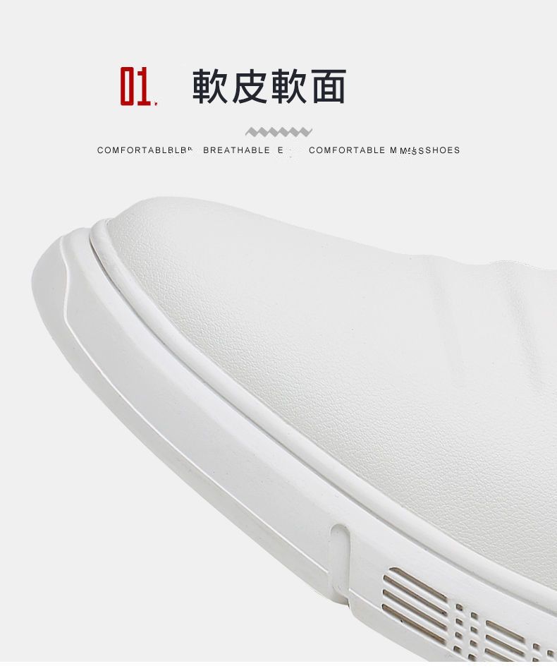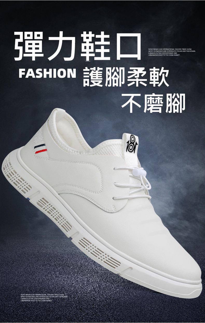 男士彈力鞋口軟皮軟面一鍵繫帶韓版皮鞋【白色】一雙