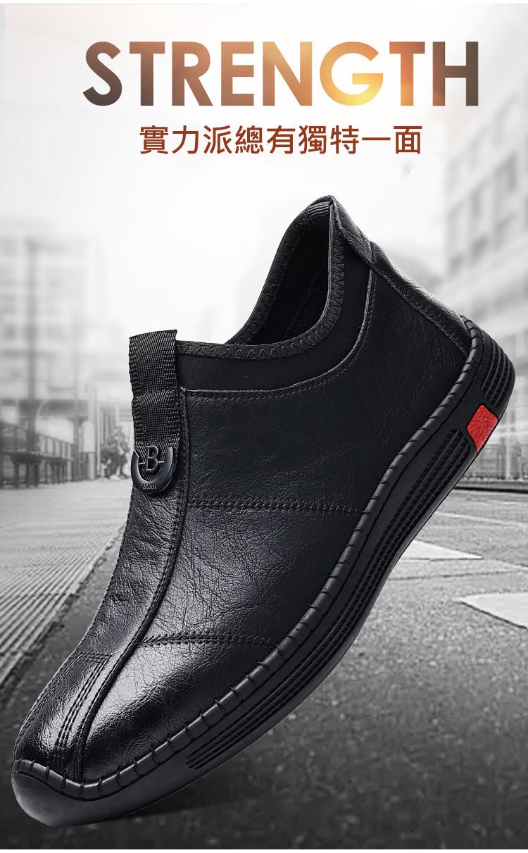【手工上線,拒絕開膠!】輕質透氣時尚拼接便捷套腳軟皮鞋【黑色】一雙