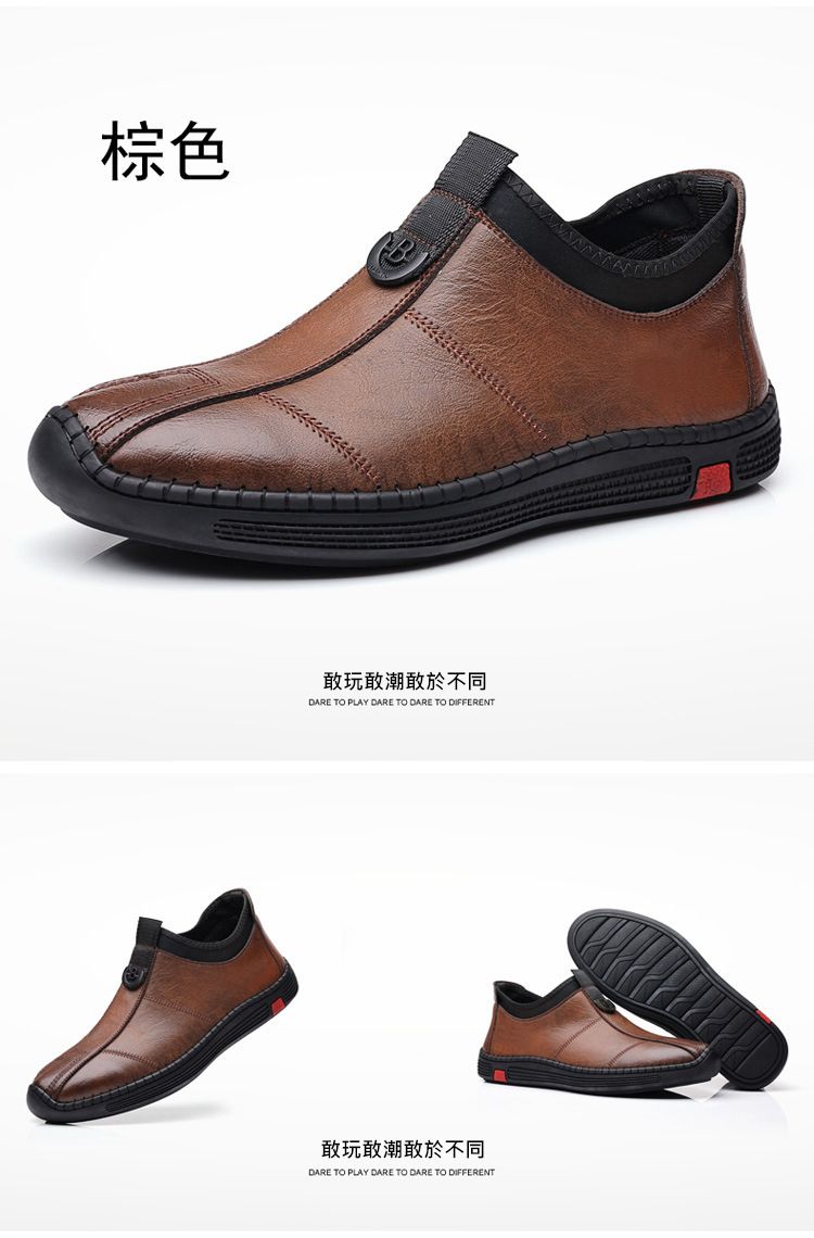 【手工上線,拒絕開膠!】輕質透氣時尚拼接便捷套腳軟皮鞋【棕色】一雙