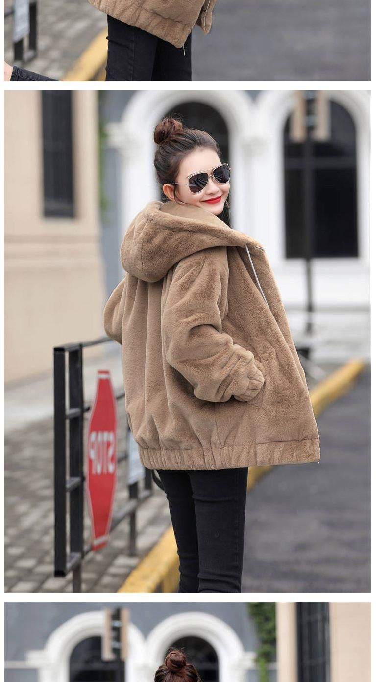 雙面絨女士百搭寬鬆保暖連帽外套【卡其色】一件
