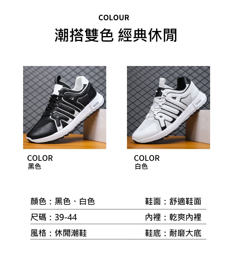 【經典休閒!】男士透氣網布跑步運動鞋【白色】+【黑色】各一雙(優惠400)