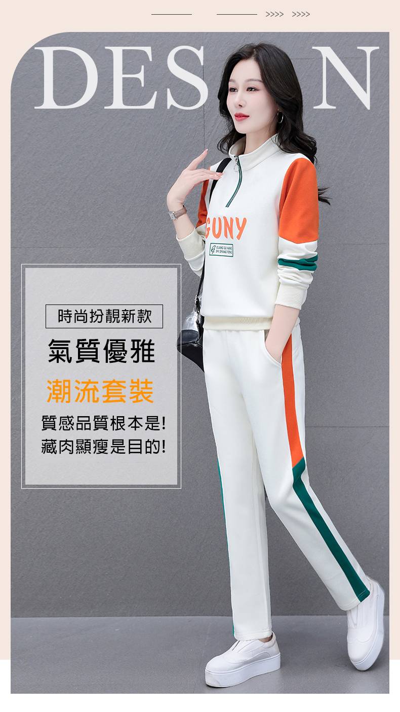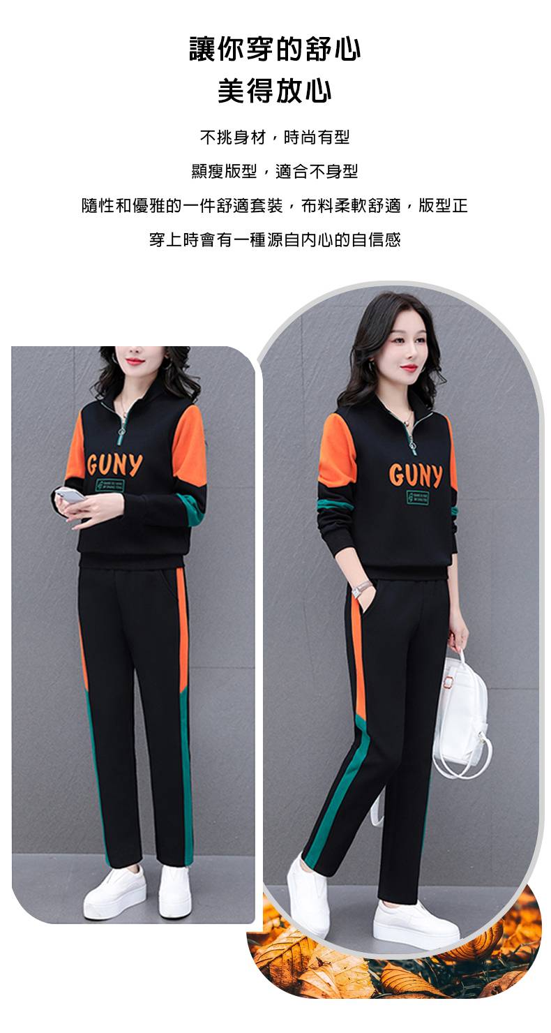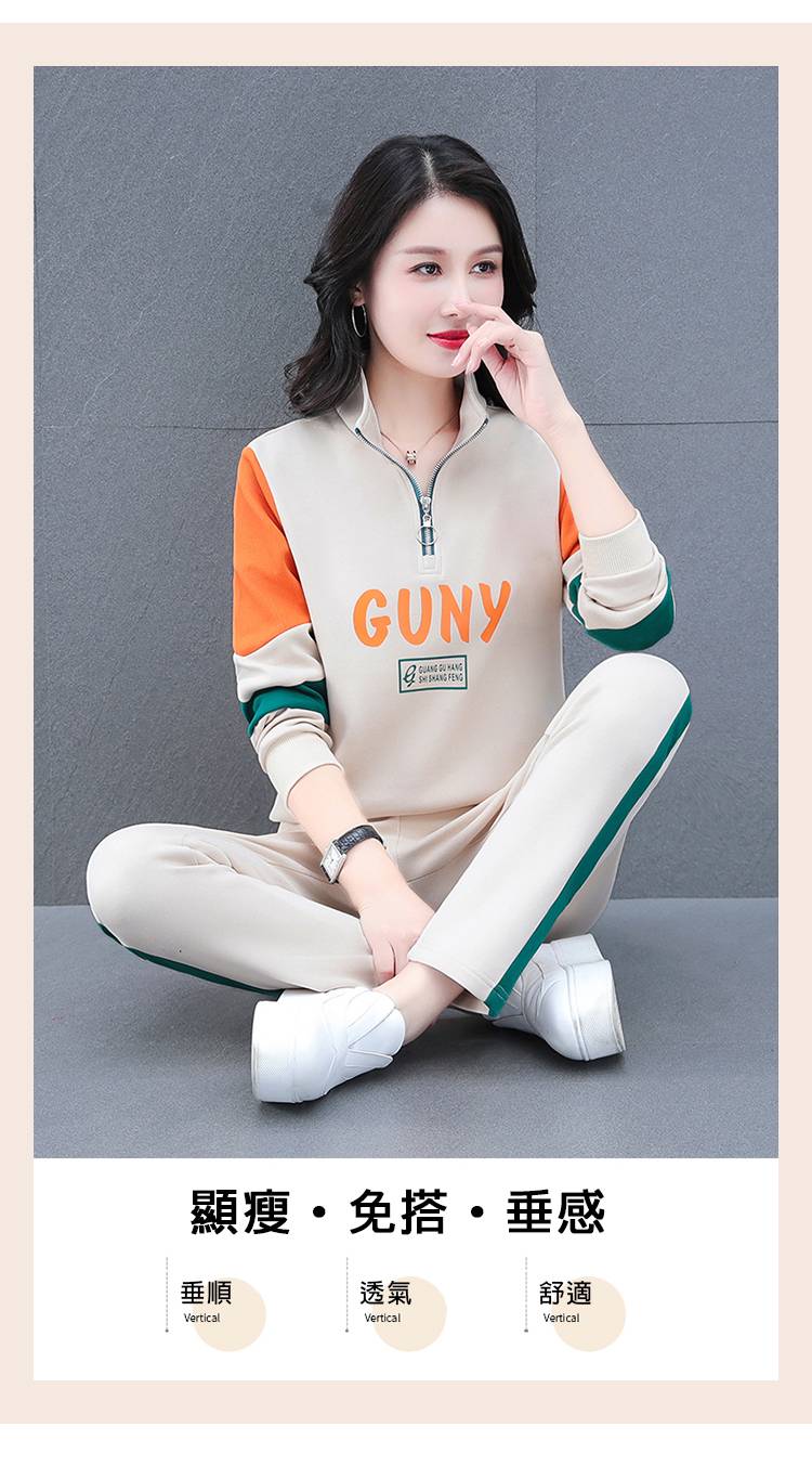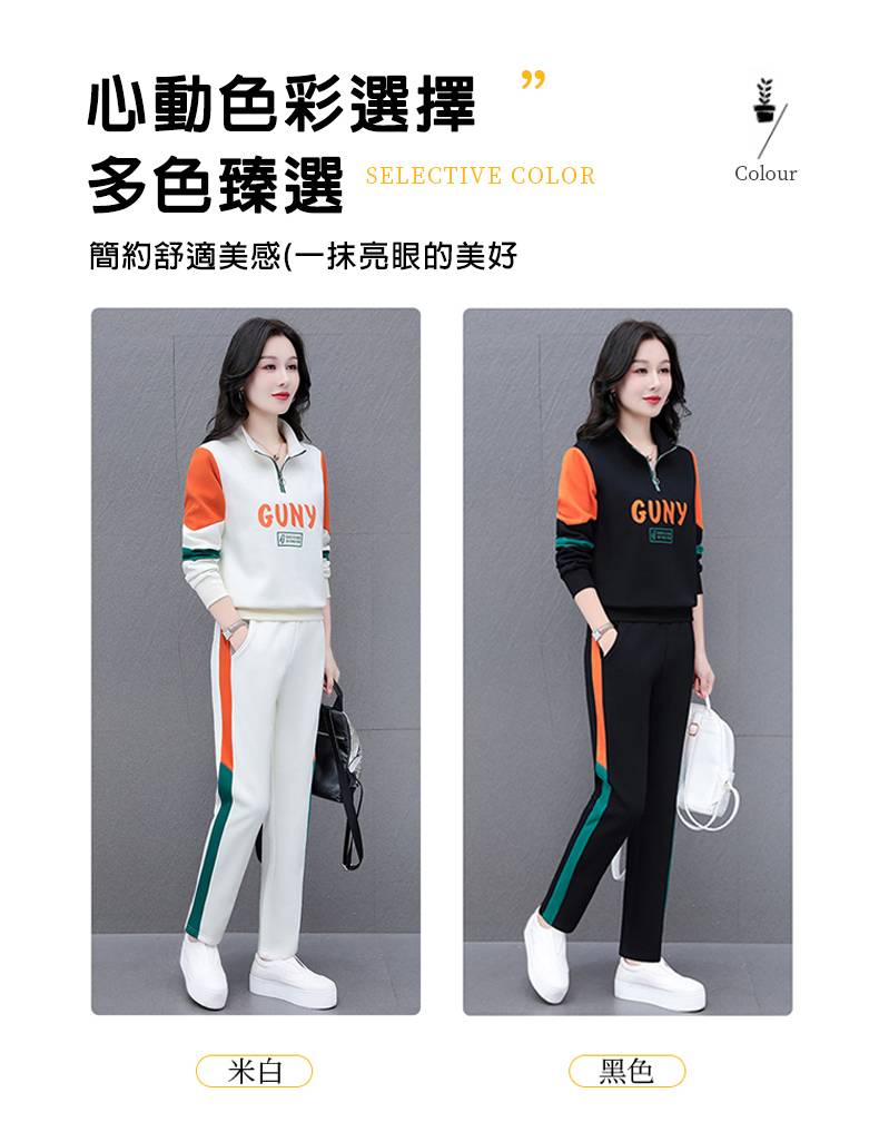 字母印花休閒衛衣長褲兩件套【黑色】+【杏色】各一套(優惠400,每套798)
