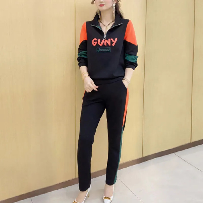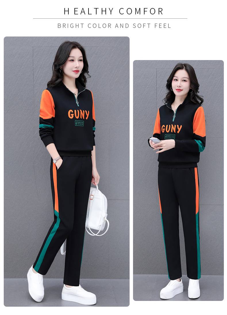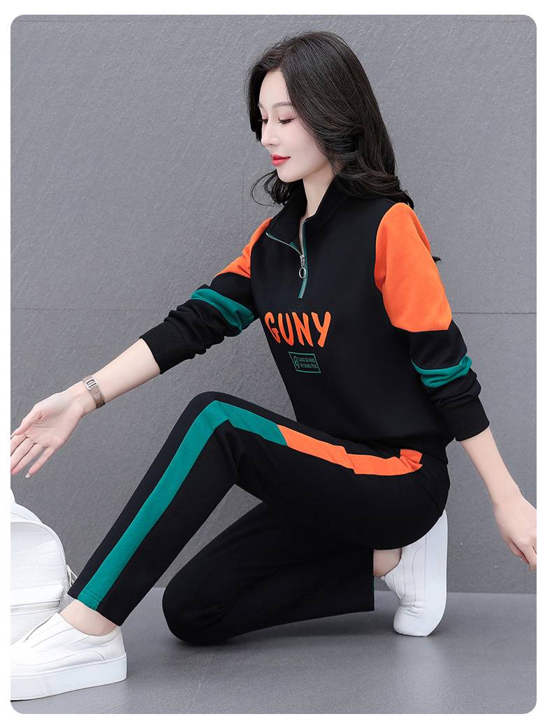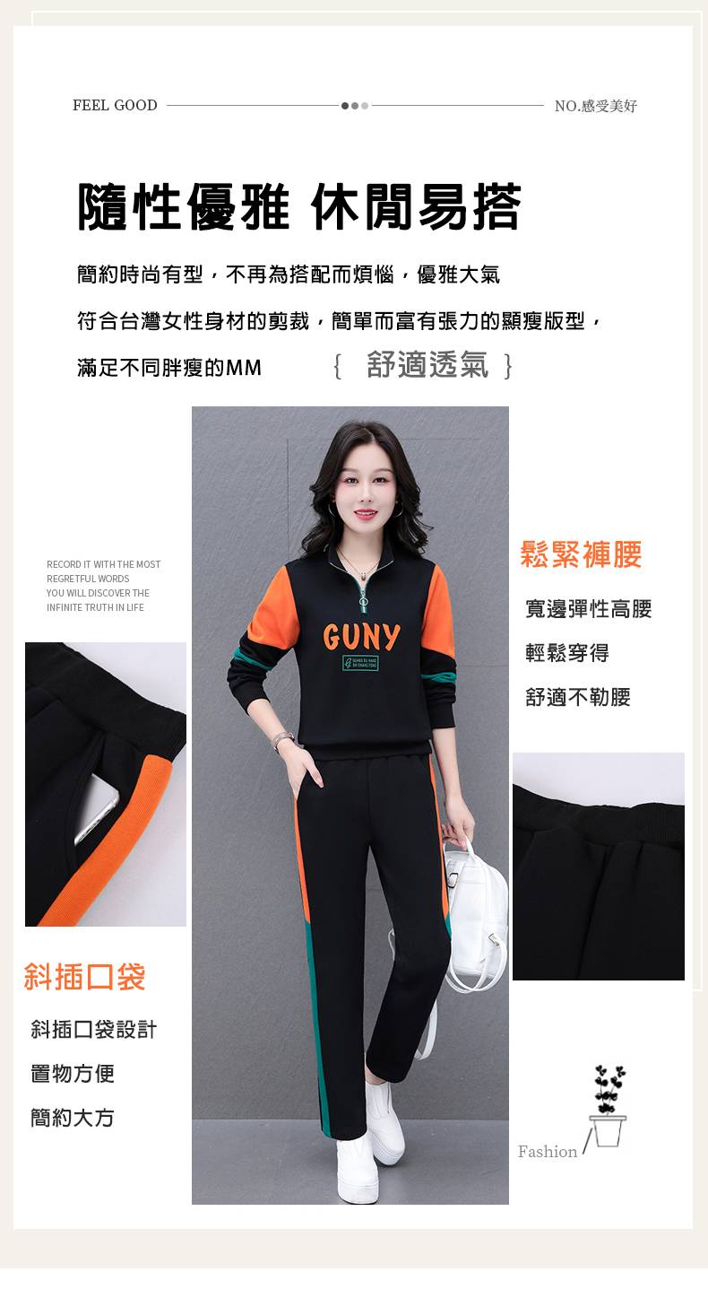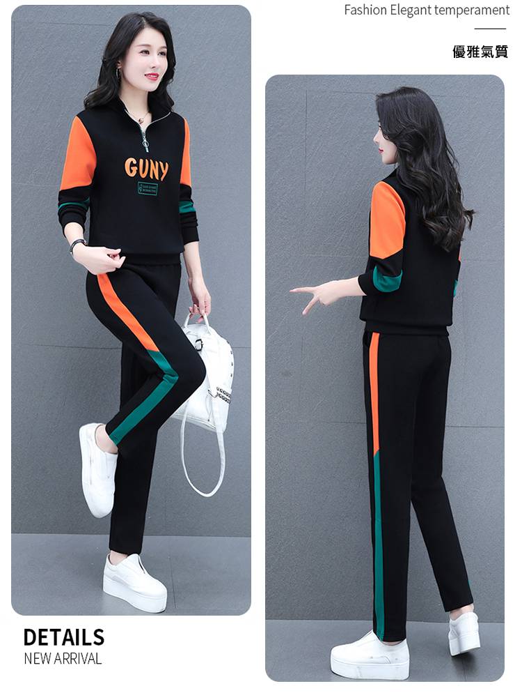 字母印花休閒衛衣長褲兩件套【黑色】+【杏色】各一套(優惠400,每套798)