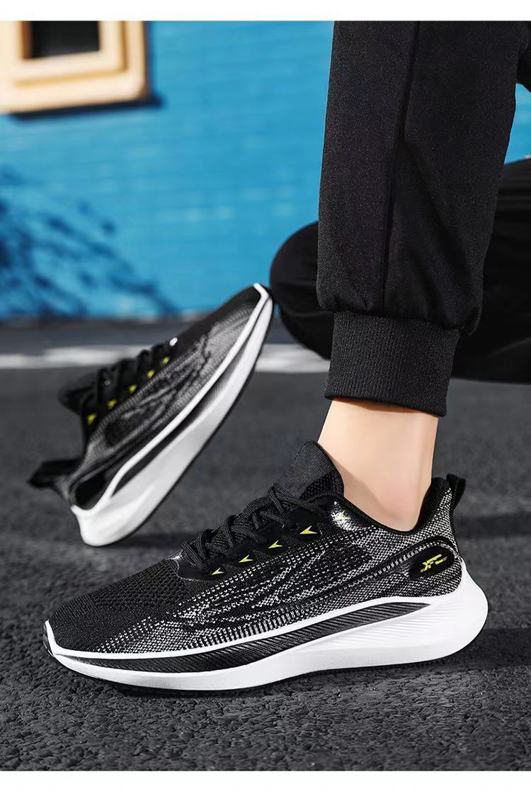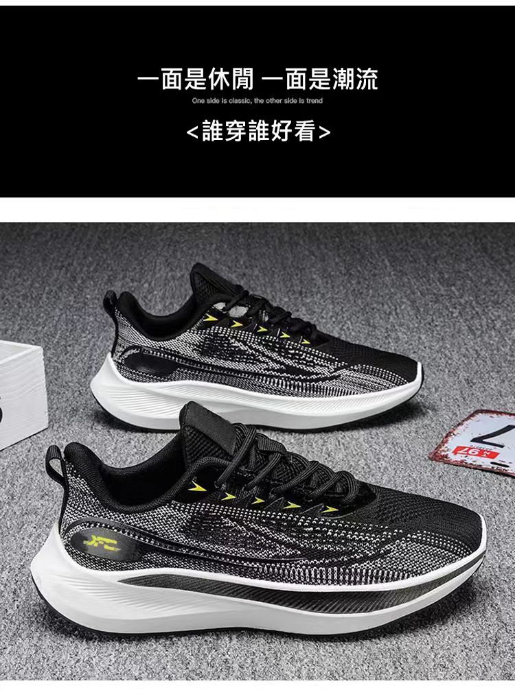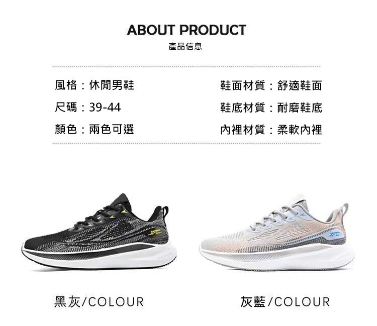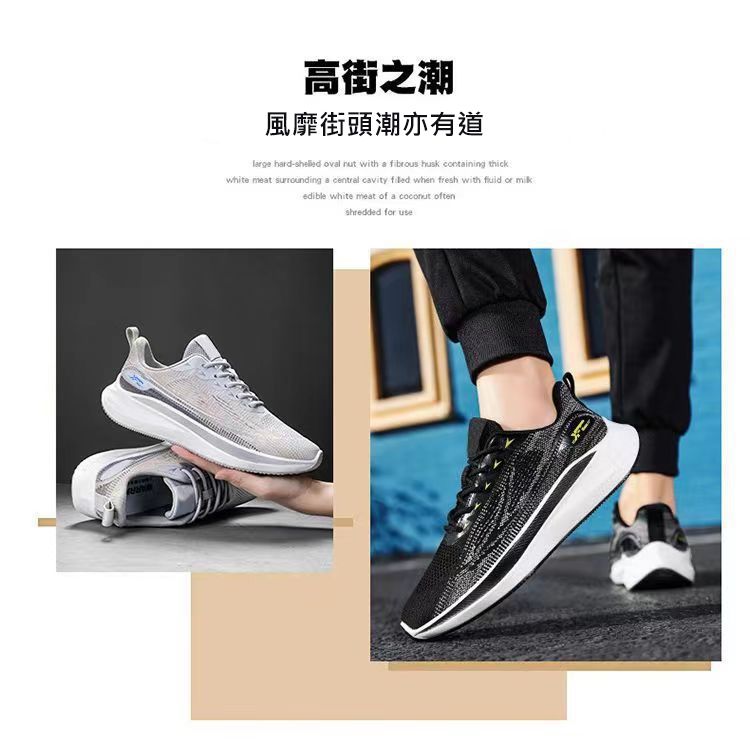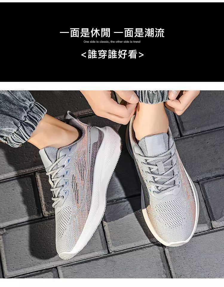 【透氣防滑】針織圓頭繫帶男士運動鞋