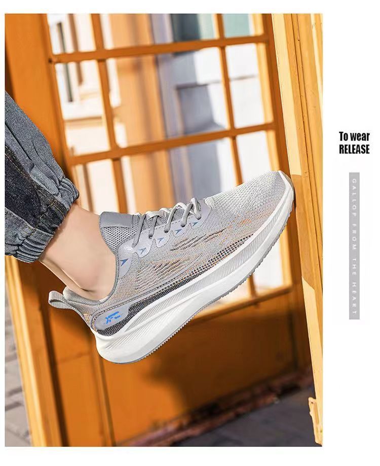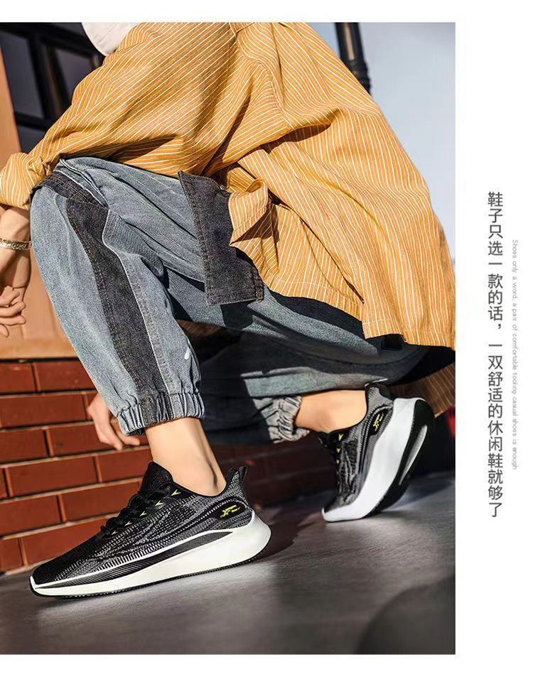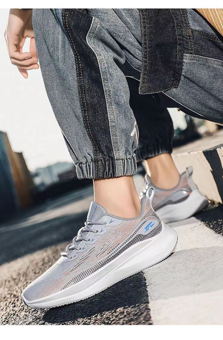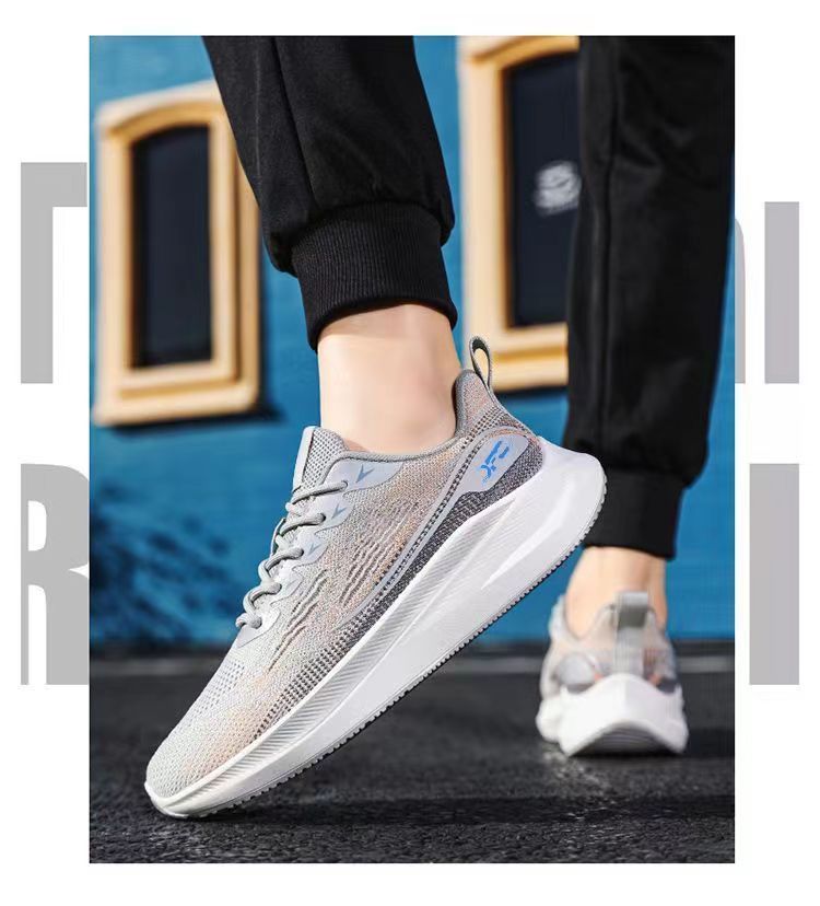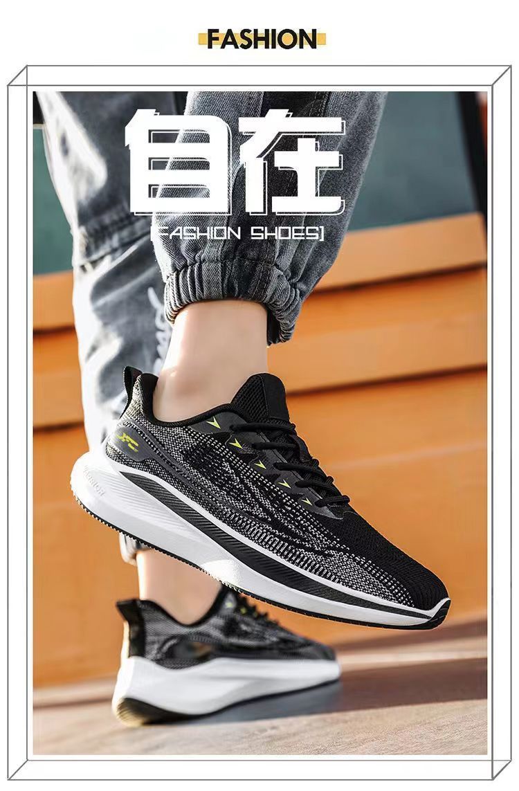 【透氣防滑】針織圓頭繫帶男士運動鞋