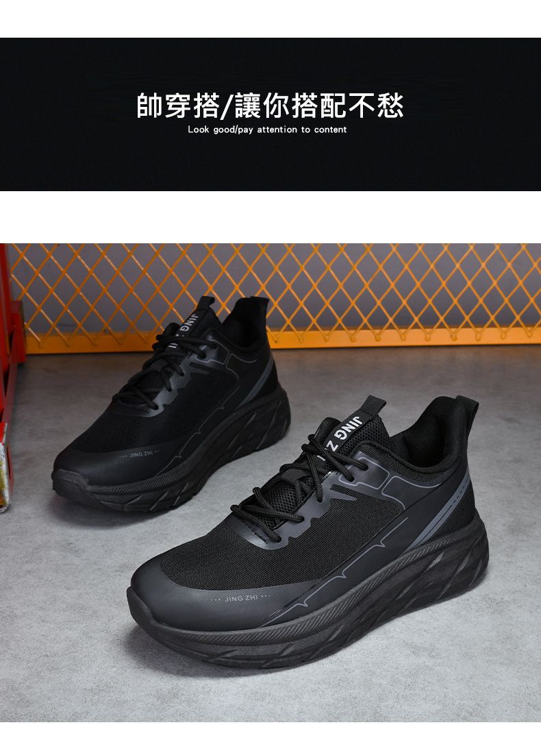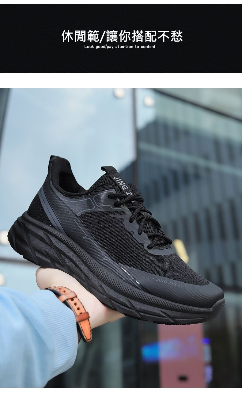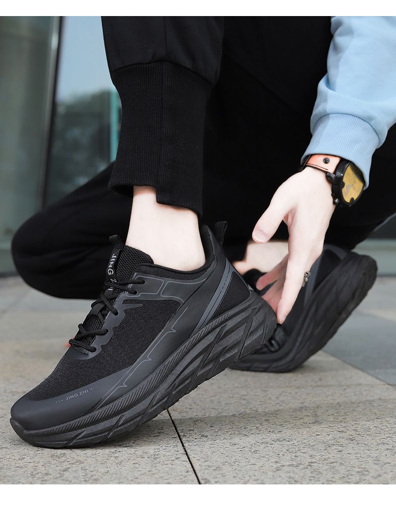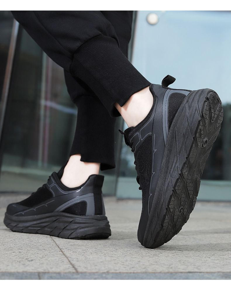 【增高舒適休閒】繫帶軟底舒適跑步男鞋【黑色】一雙