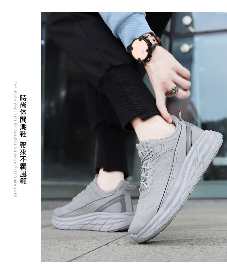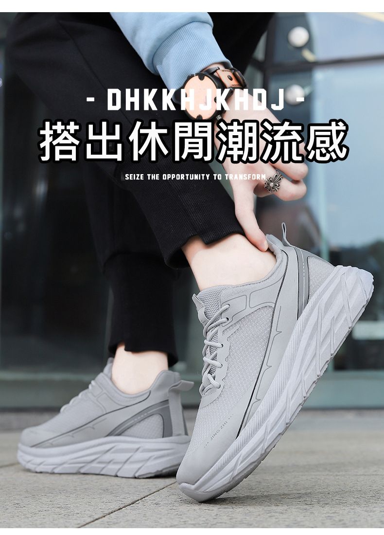 【柔軟回彈!】增高透氣運動風休閒男鞋
