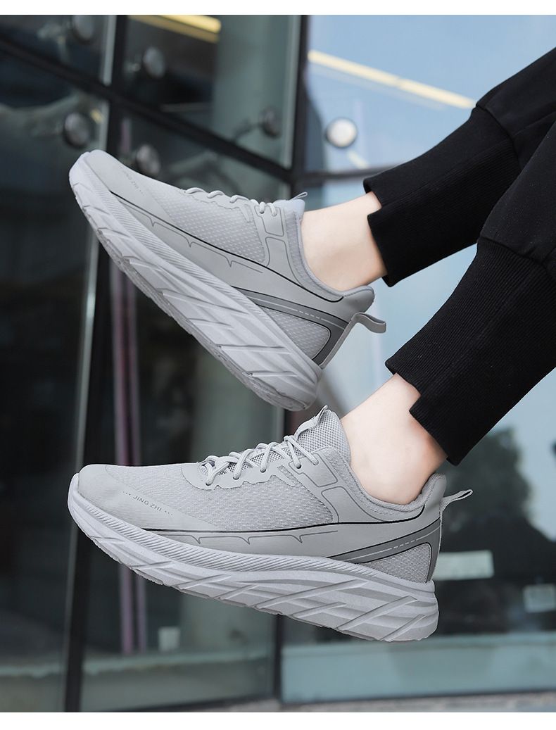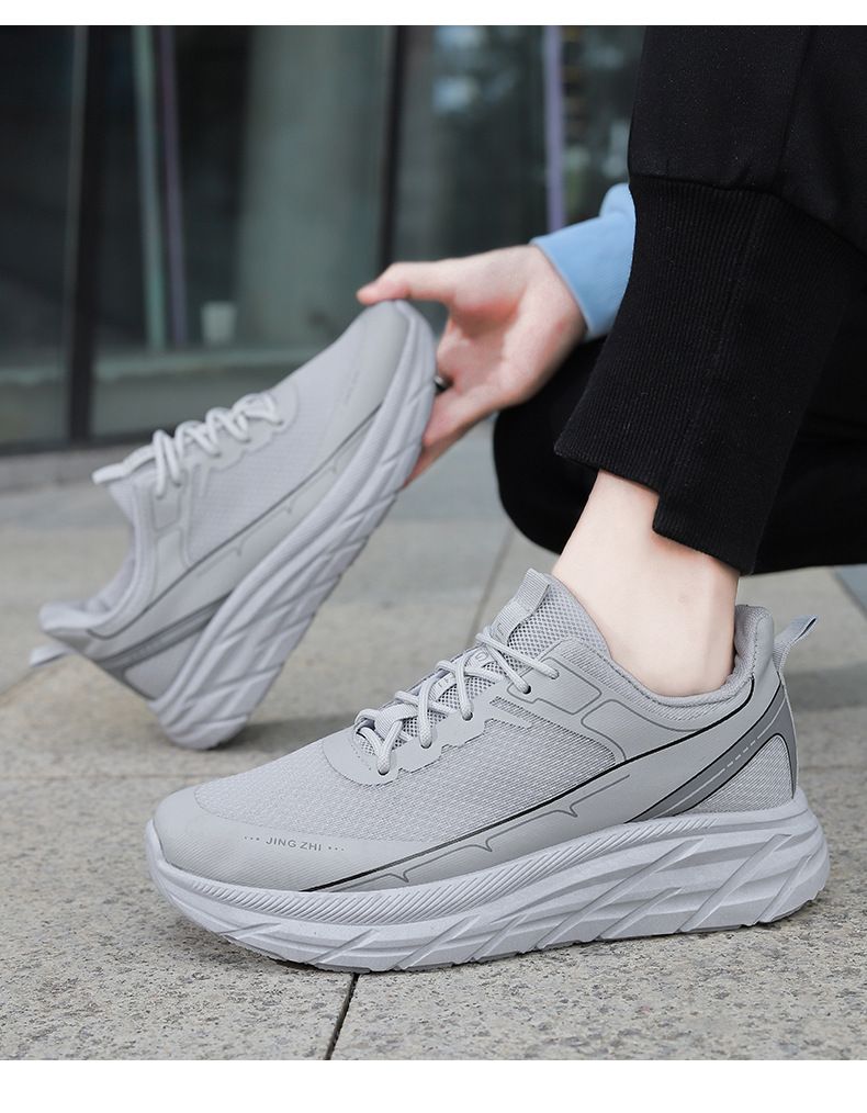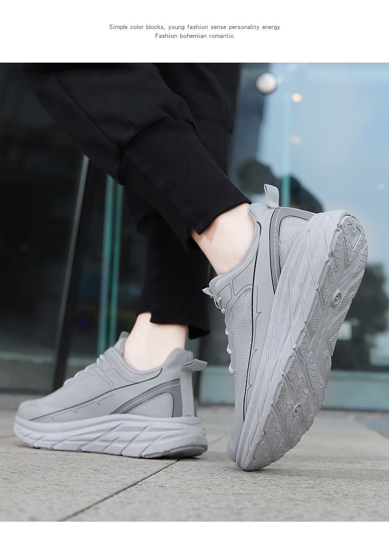 【增高舒適休閒】繫帶軟底舒適跑步男鞋【灰色】一雙