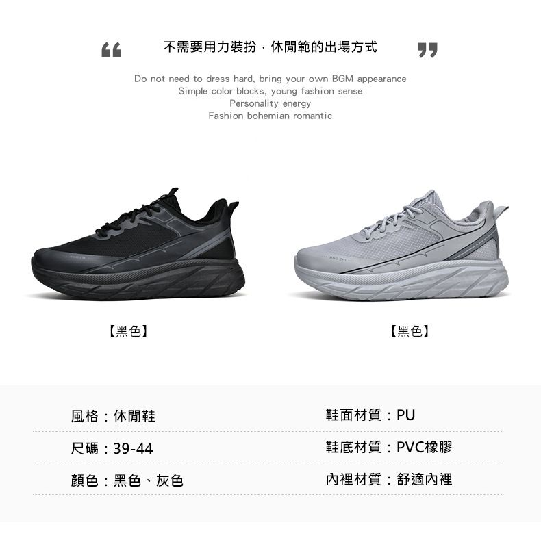【增高舒適休閒】繫帶軟底舒適跑步男鞋【灰色】+【黑色】各一雙(優惠400)