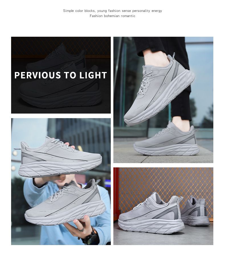 【運動潮搭!】男士新款皮革網面透氣跑鞋