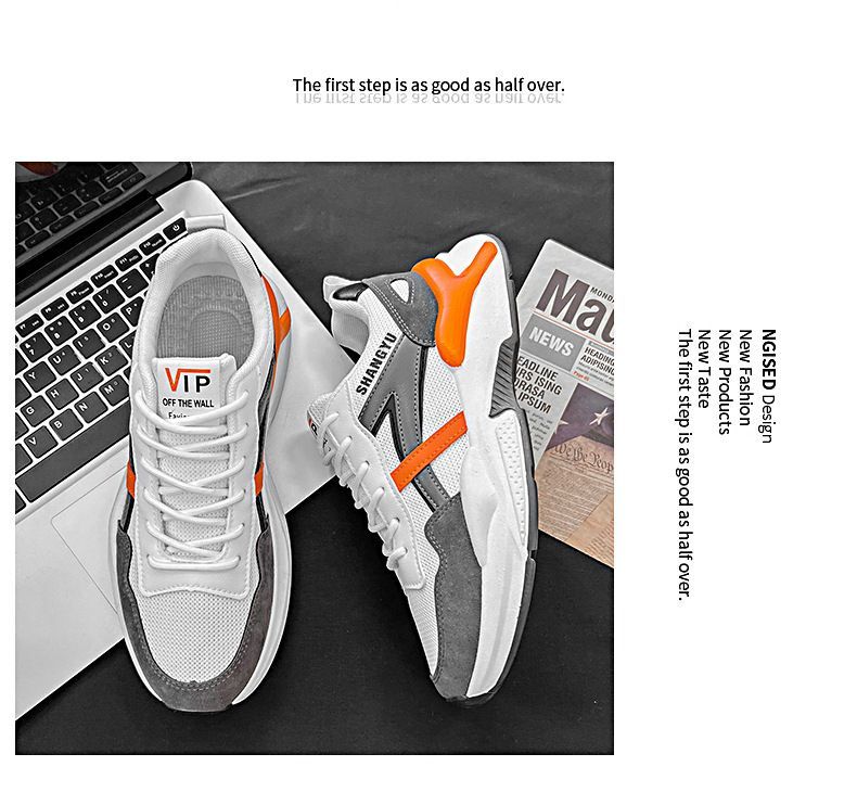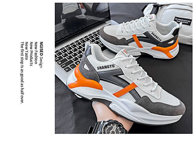 【隨心而行!】男士春夏透氣休閒增高老爹鞋【黃色】+【橘色】各一雙(優惠400)