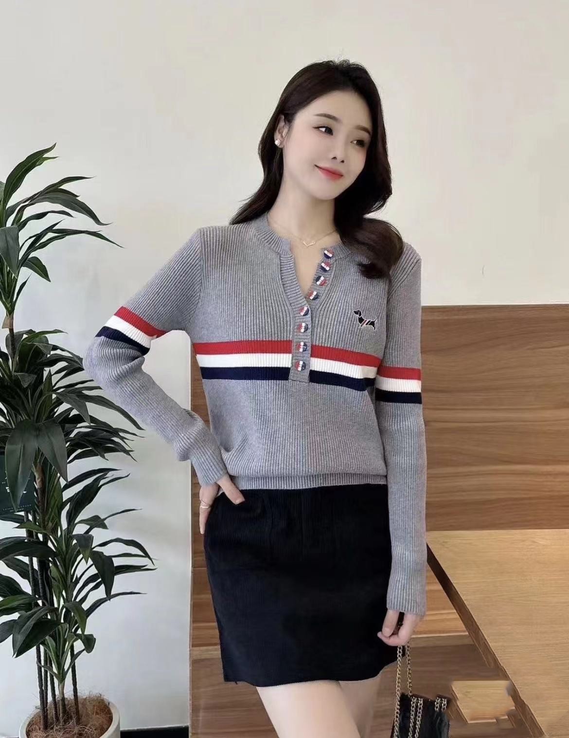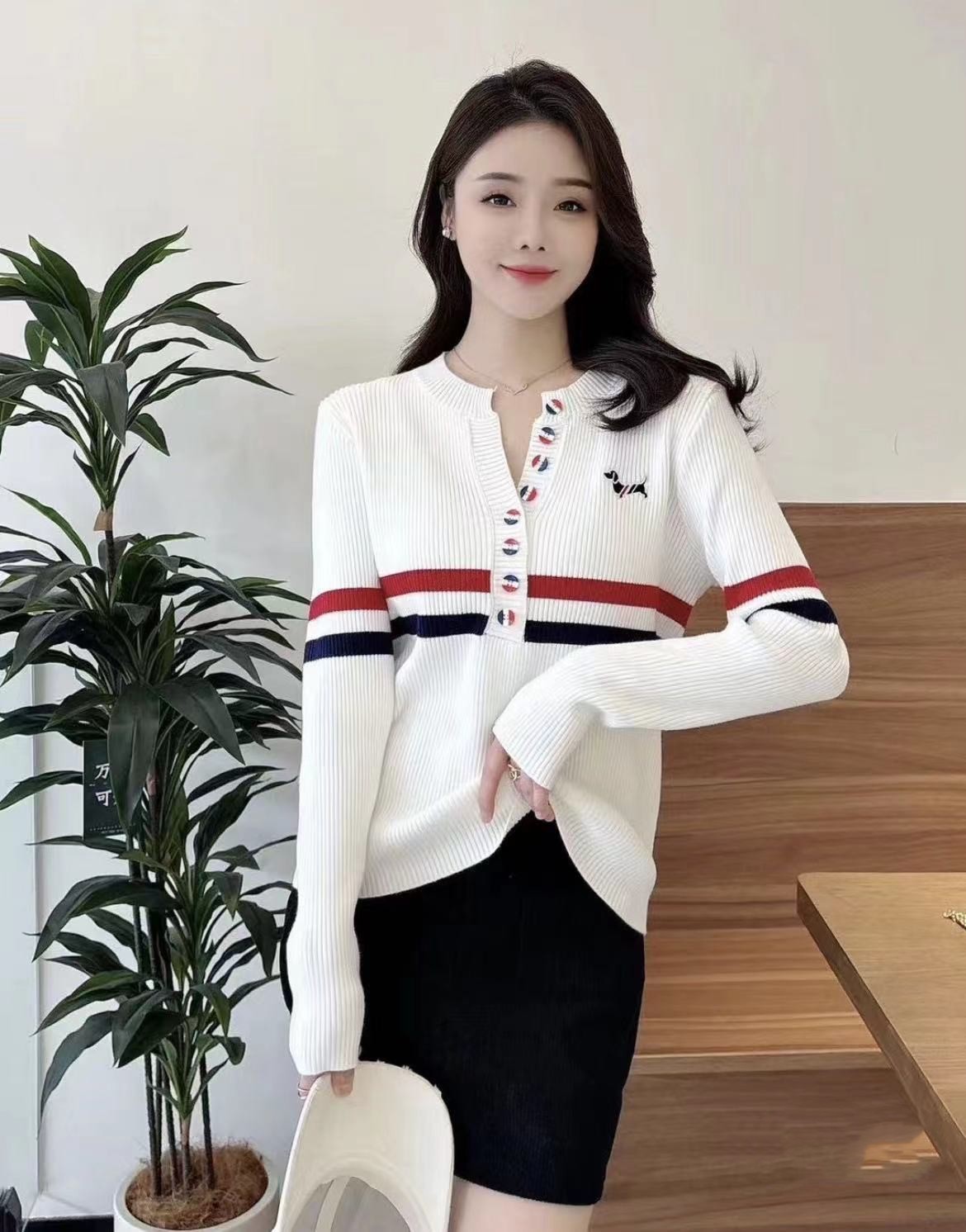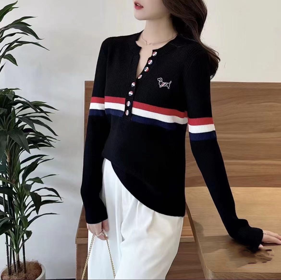 排扣刺繡女士長袖【秒殺四件!】一件黑色+一件白色+兩件灰色(到手四件,每件449元!)