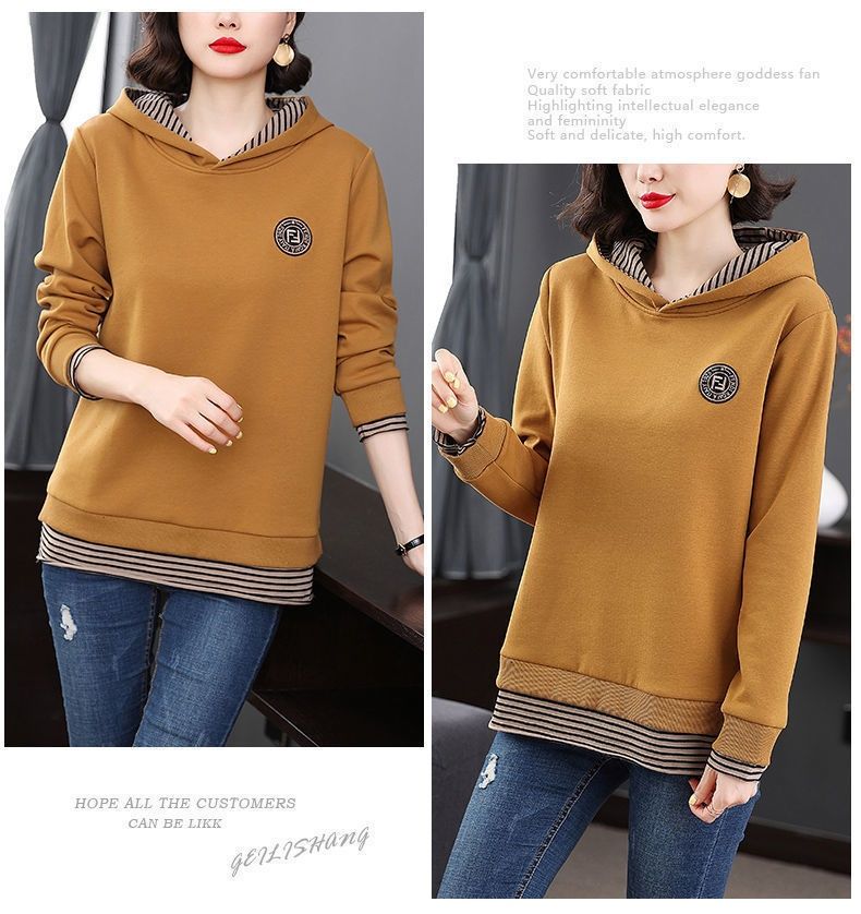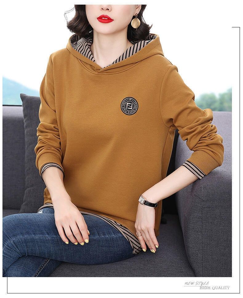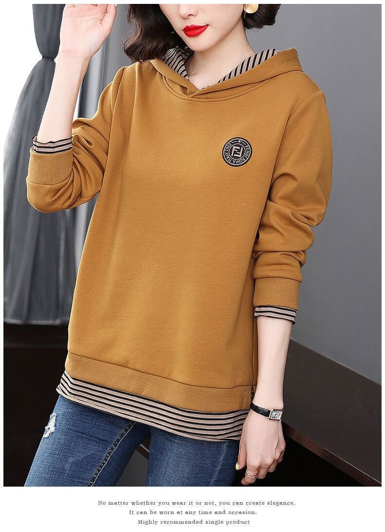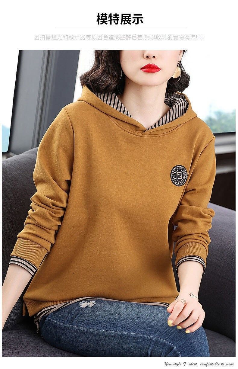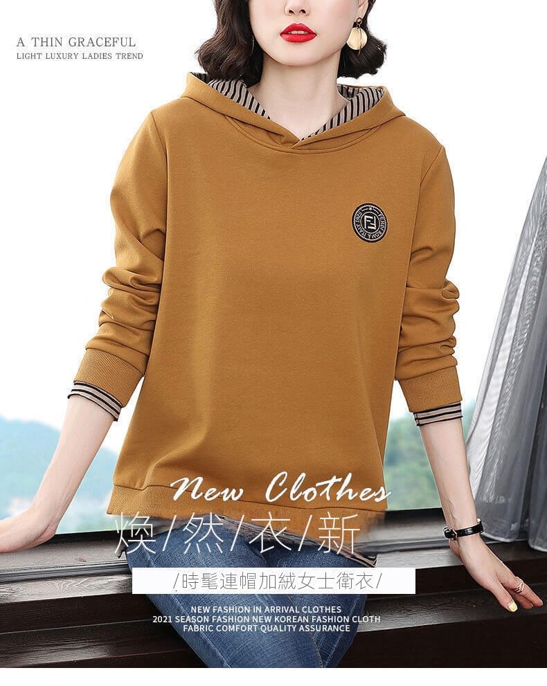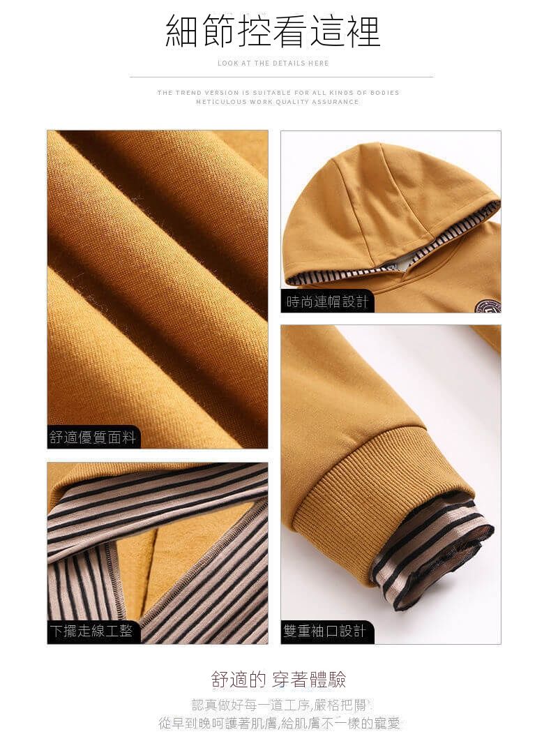 連帽條紋親膚純棉衛衣【買一送一】黃色+咖色各一件(到手兩件,每件549元!)