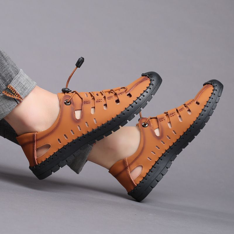 清爽透氣全牛皮鏤空軟底鞋【卡其色】+【黑色】各一雙(優惠400)