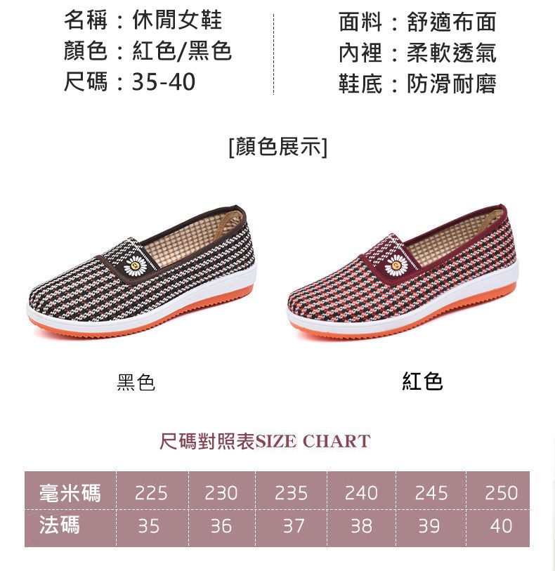 女士防滑軟底透氣休閒鞋【紅色】+【黑色】各一雙=1098