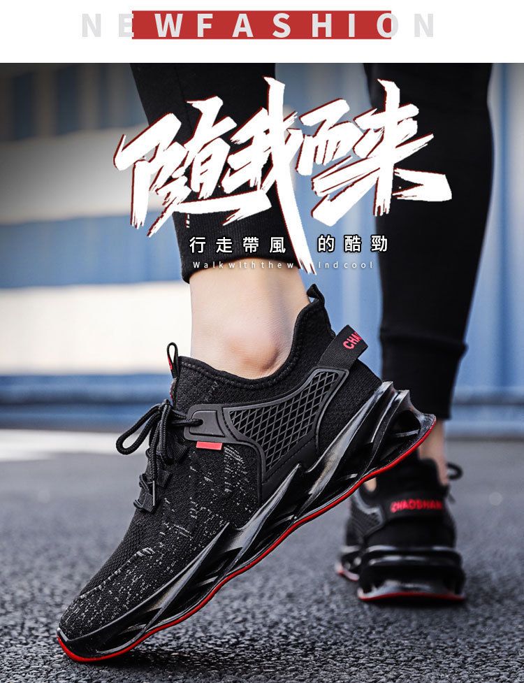 【新春爆賣!】韓版潮流螺紋刀鋒底透氣減震男鞋【黑紅色】一雙