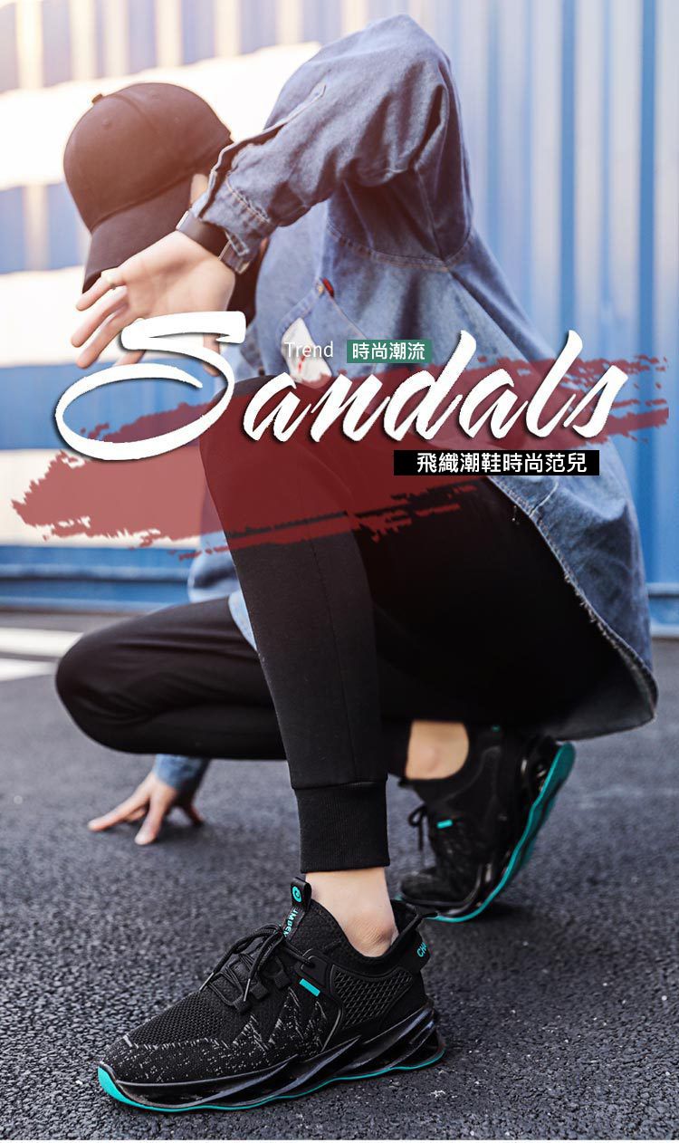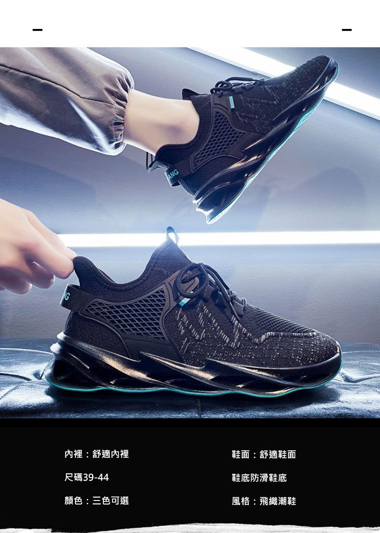 【新春爆賣!】韓版潮流螺紋刀鋒底透氣減震男鞋【黑藍色】+【灰色】各一雙(優惠400)