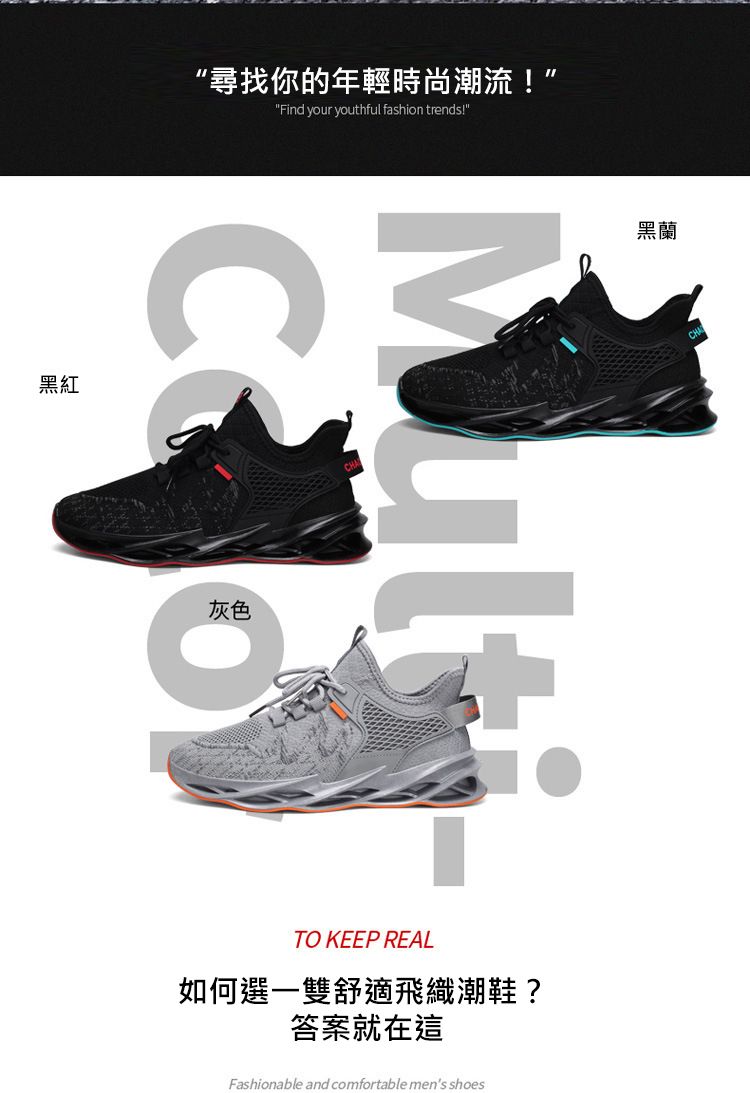 【新春爆賣!】韓版潮流螺紋刀鋒底透氣減震男鞋【灰色】+【黑紅色】各一雙(優惠400)