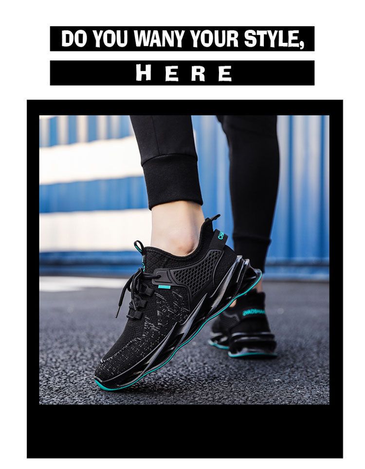 【新春爆賣!】韓版潮流螺紋刀鋒底透氣減震男鞋【黑藍色】+【黑紅色】各一雙(優惠400)