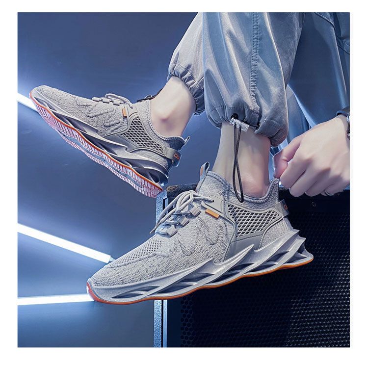 【新春爆賣!】韓版潮流螺紋刀鋒底透氣減震男鞋【灰色】一雙