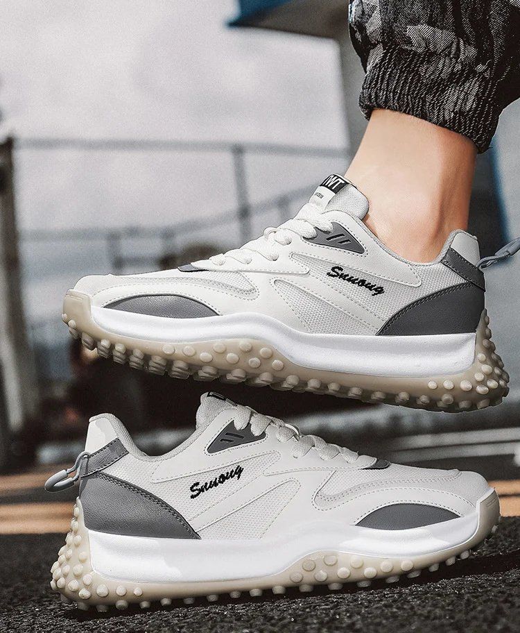 【美國時尚】男士緩震透氣運動鞋【白灰色】一雙