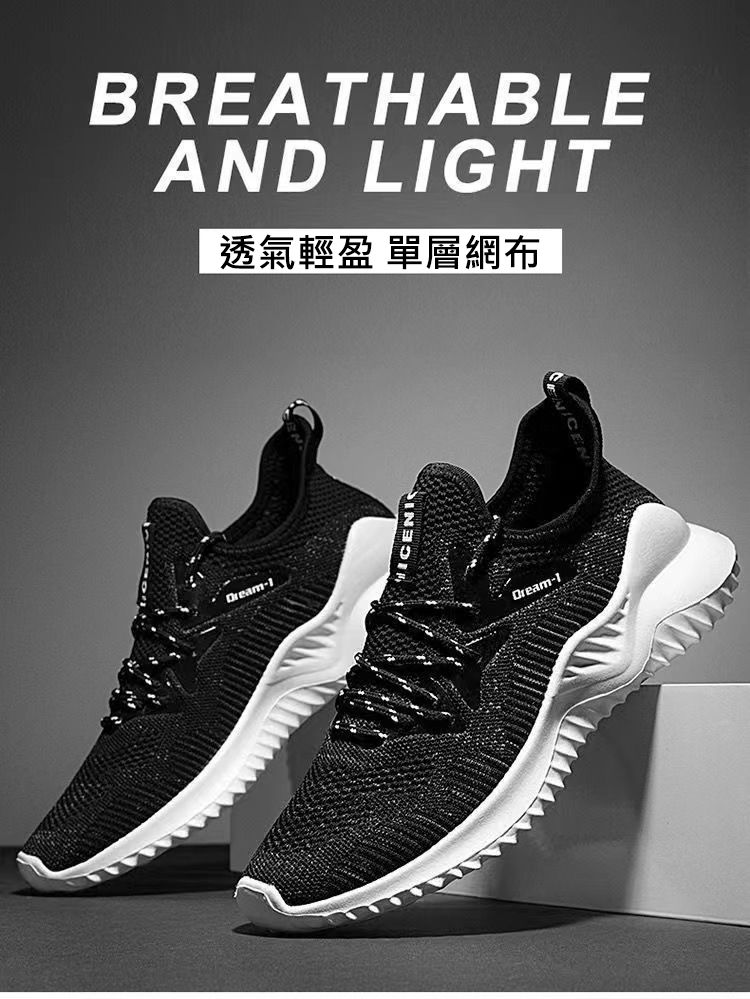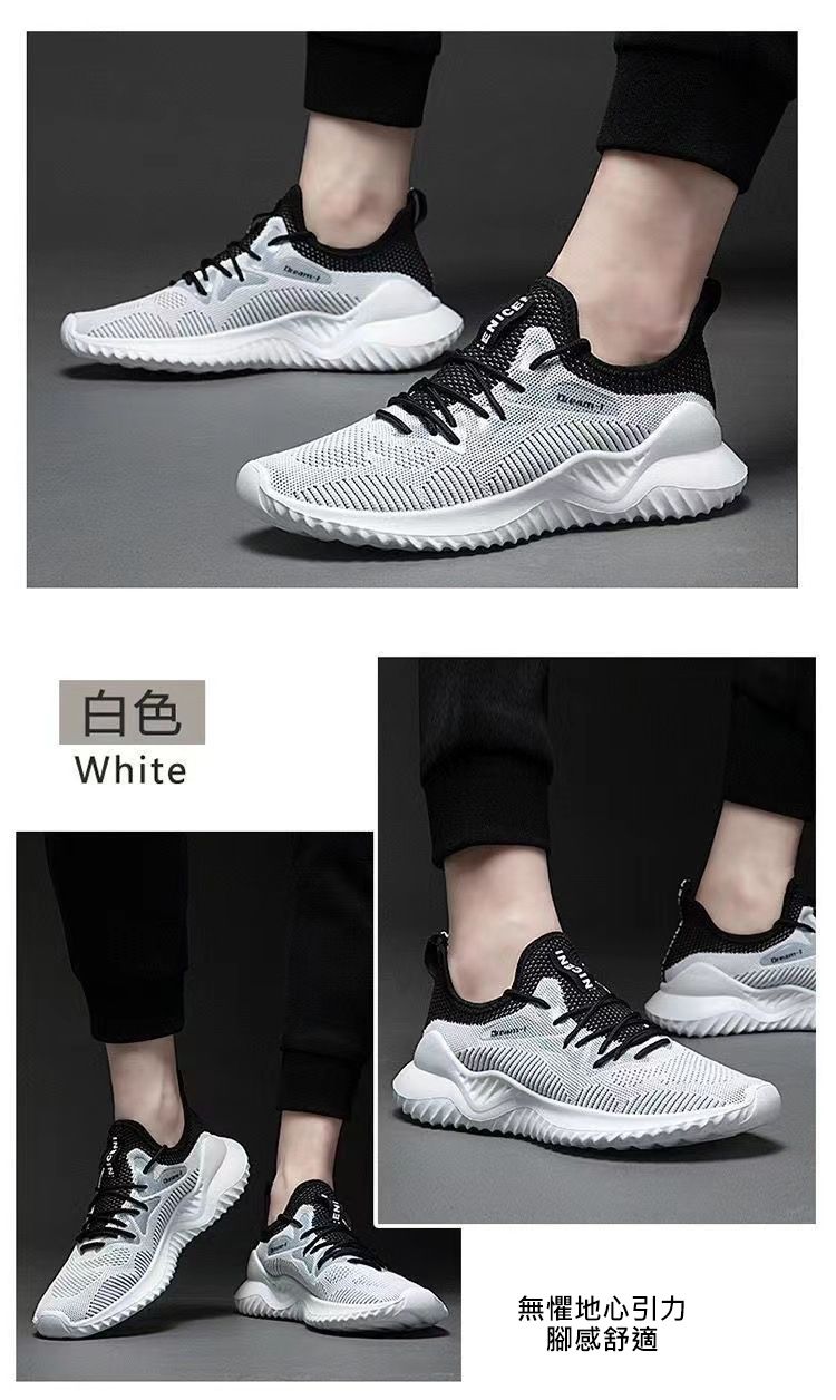 【透氣不捂腳!】男士飛織網面休閒運動鞋【黑色】+【白色】各一雙(優惠400)