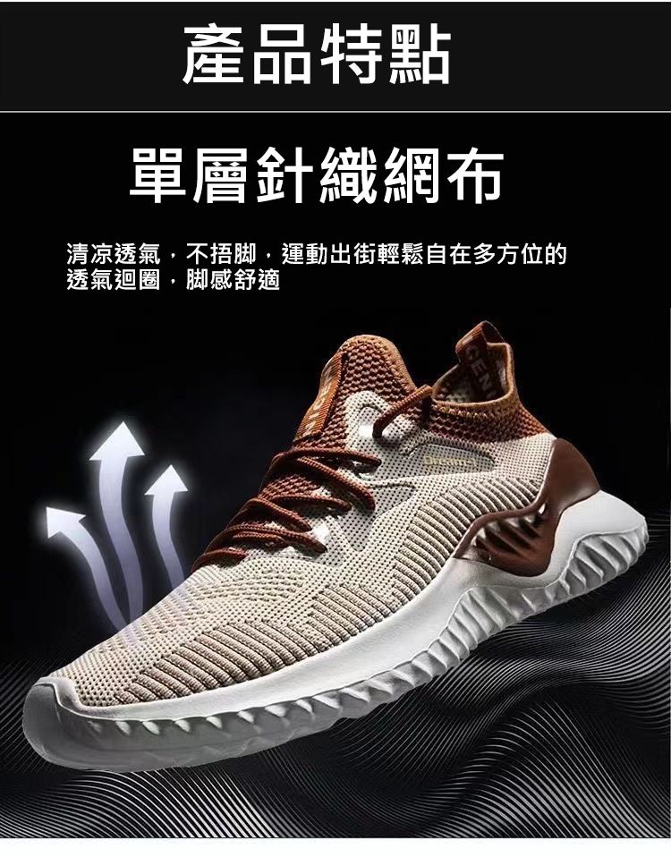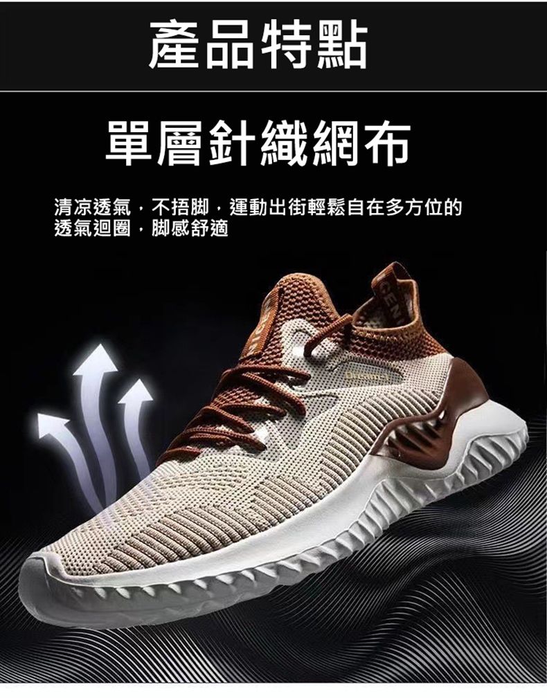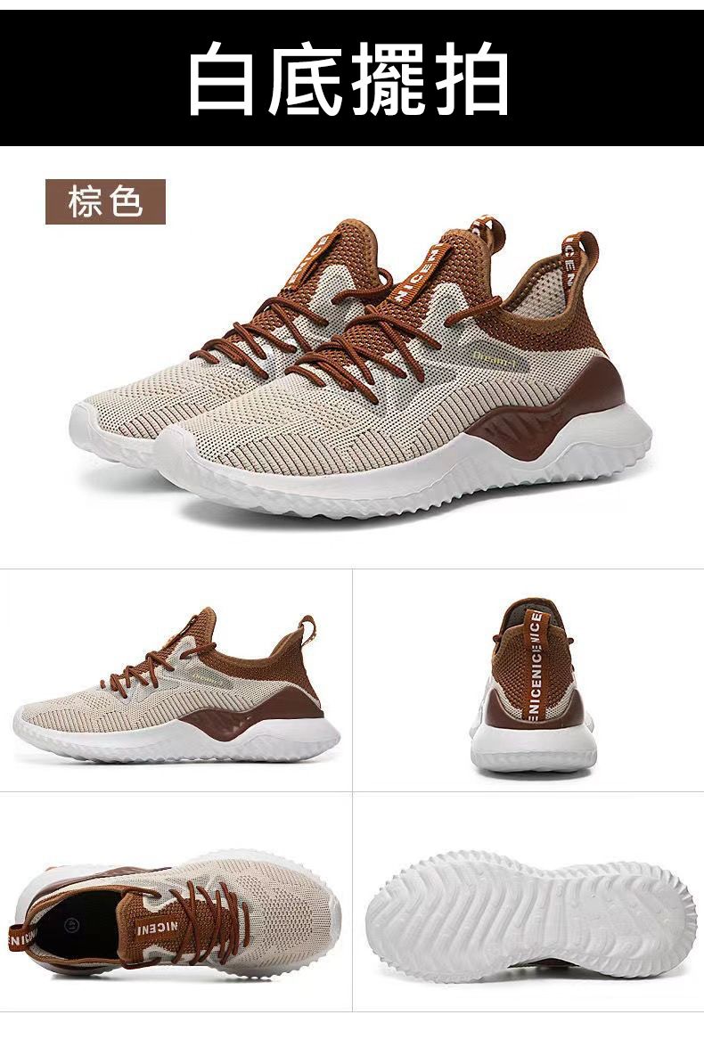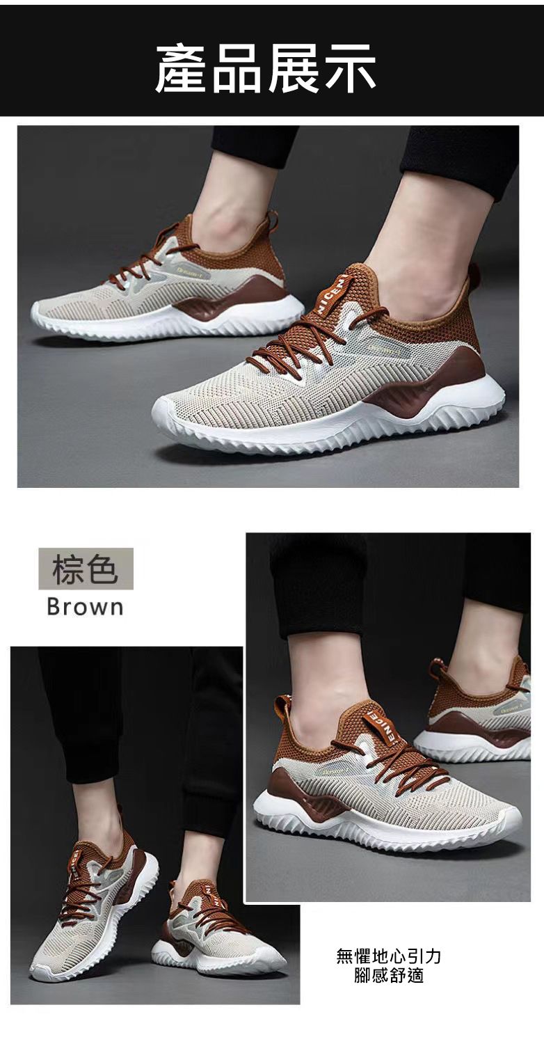 【透氣不捂腳!】男士飛織網面休閒運動鞋【咖色】+【白色】各一雙(優惠400)
