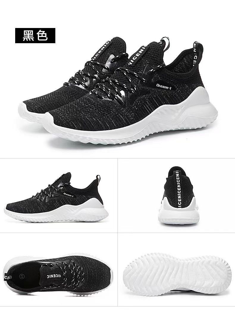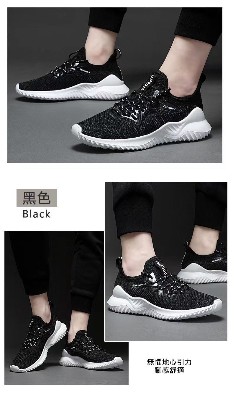 【透氣不捂腳!】男士飛織網面休閒運動鞋【黑色】一雙