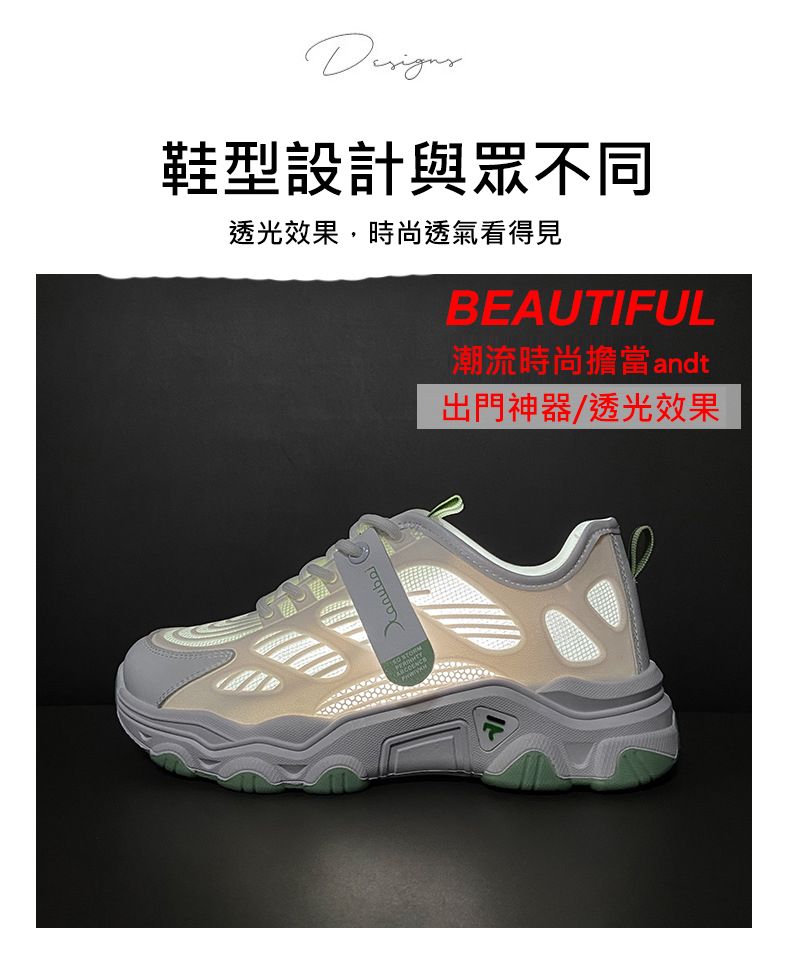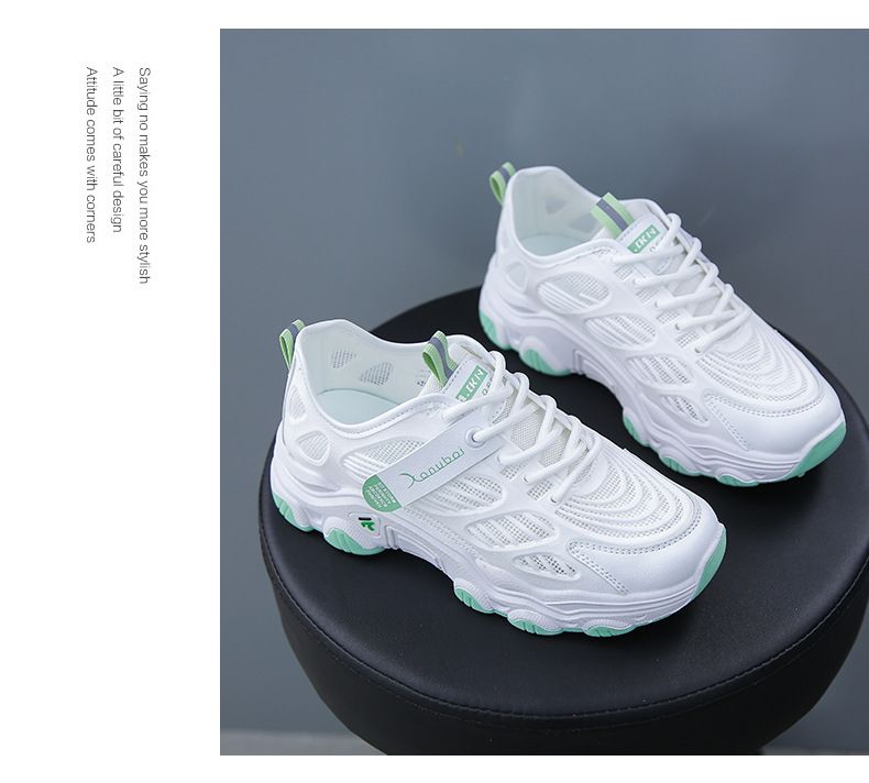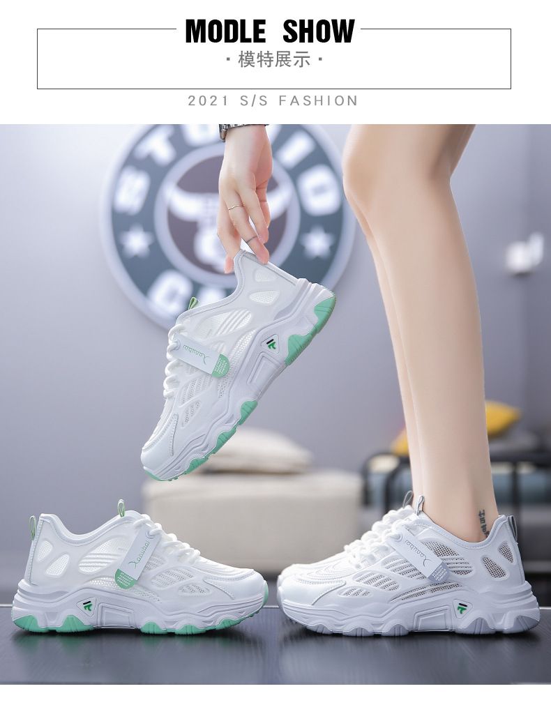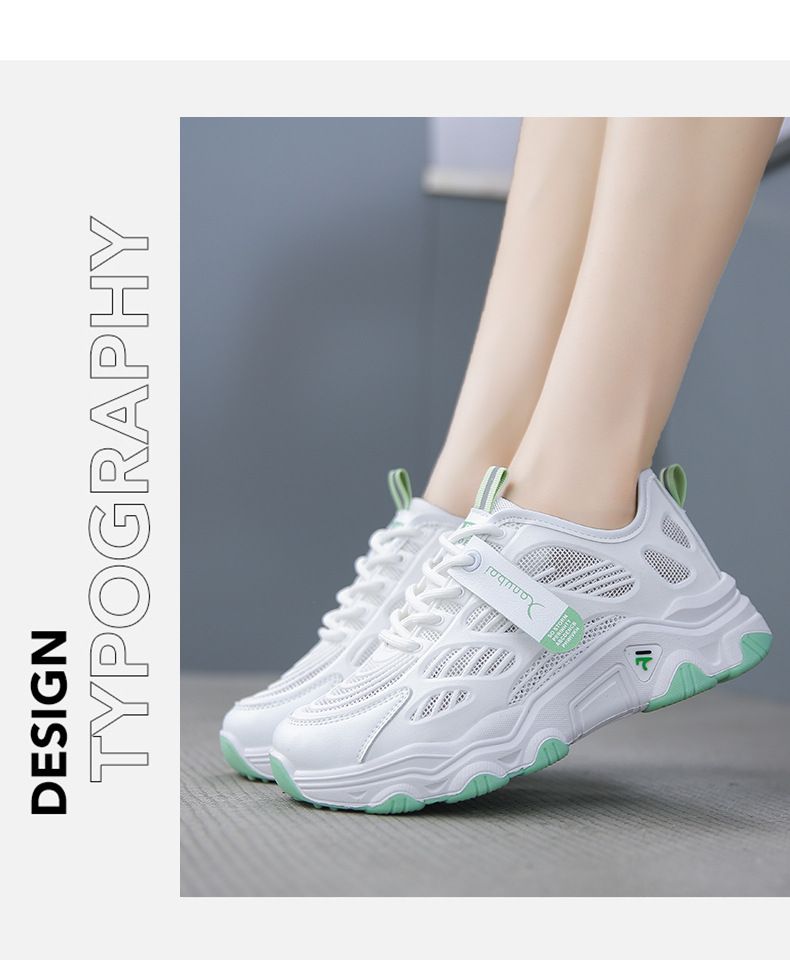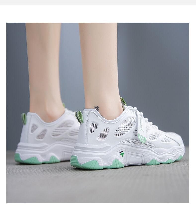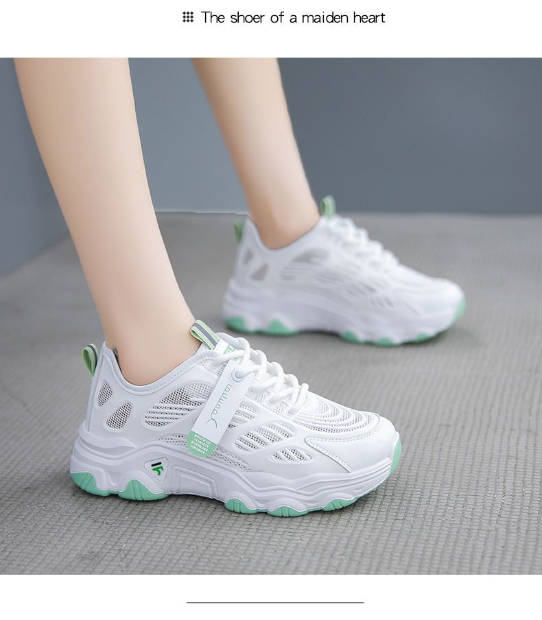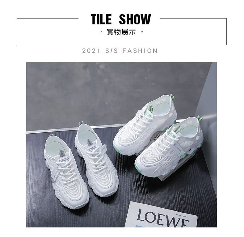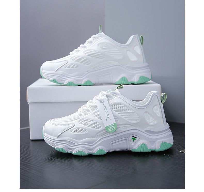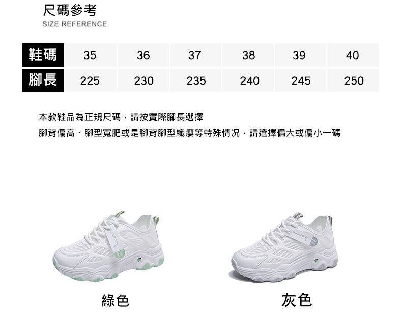 【親膚柔軟,透氣吸汗!】韓版女士毛毛蟲老爹鞋【白綠色】+【白灰色】各一雙(優惠400)