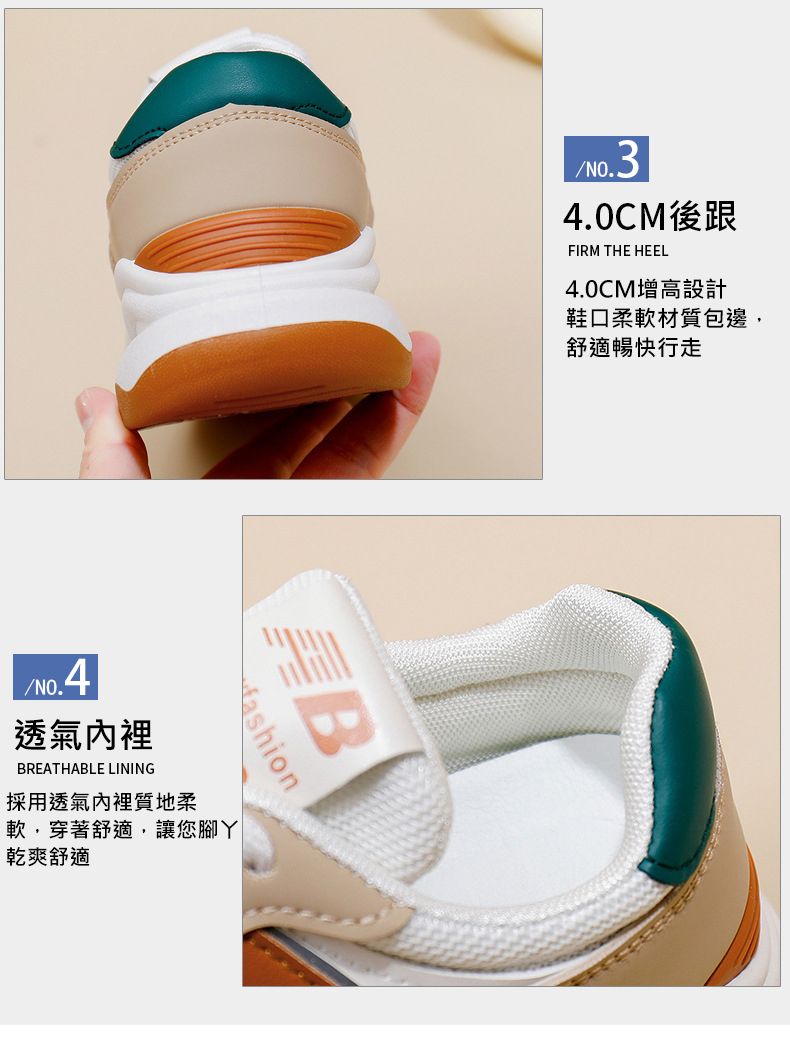 【簡約不簡單!】女士4cm增高休閒運動鞋【單網白藍色】+【單網卡其色】各一雙(優惠400)