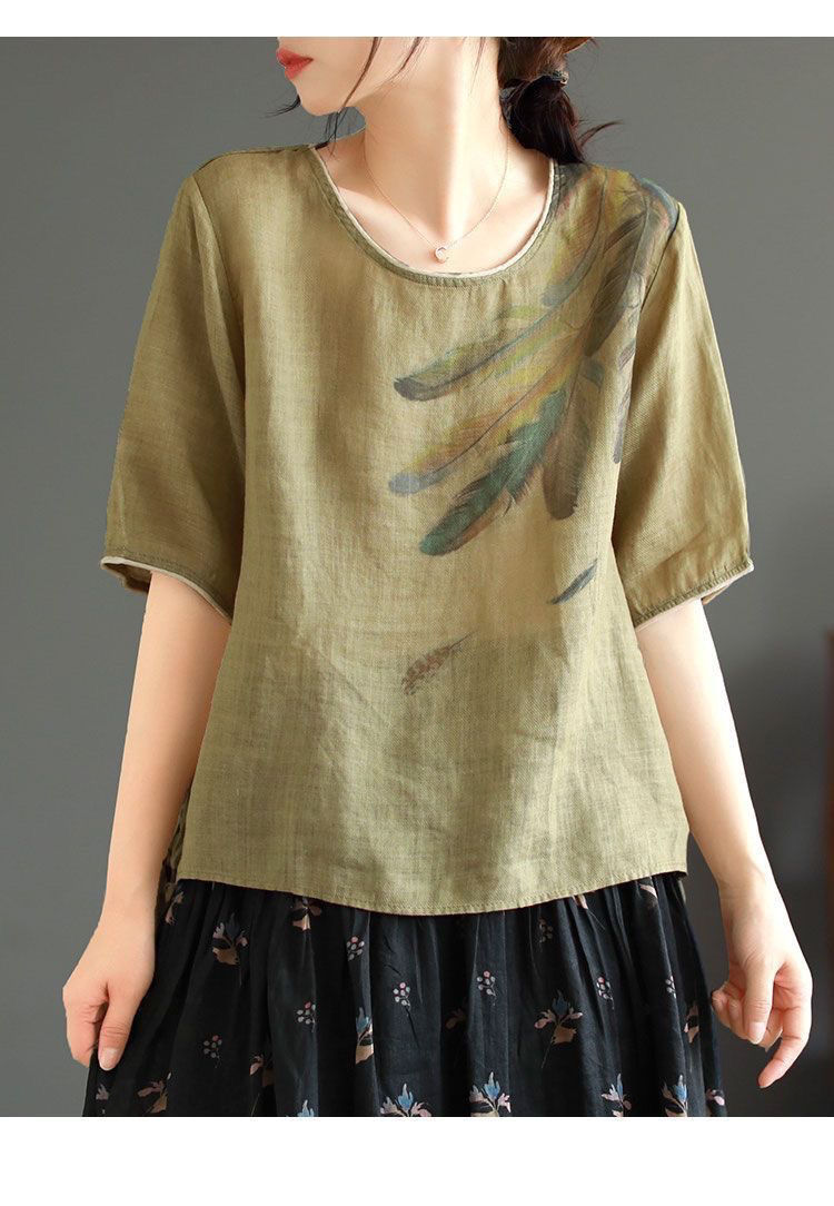 復古印花高端棉麻T恤【買一送一】原麻色+禪綠色各一件(每件499元)