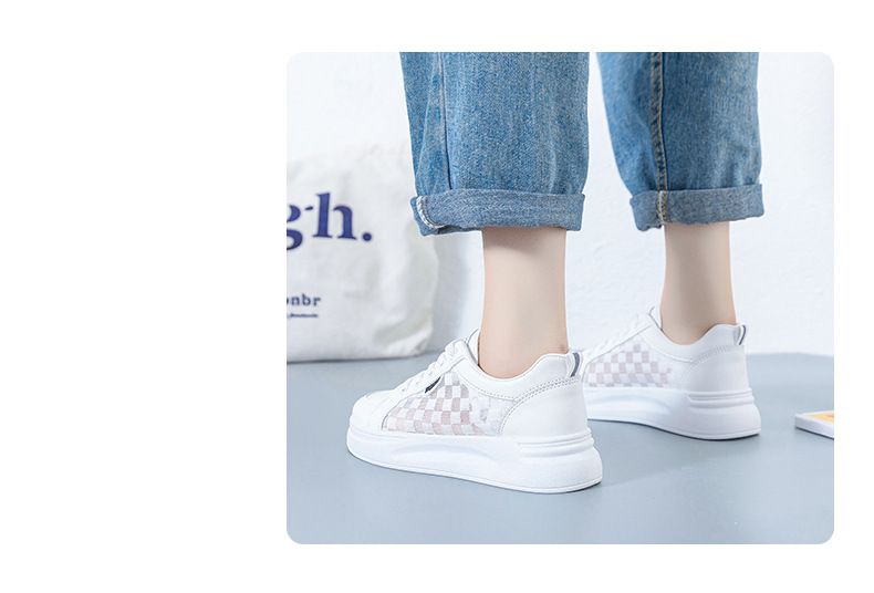 【超透氣!】夏季女士薄款網面增高休閒運動鞋【千鳥圖案】一雙