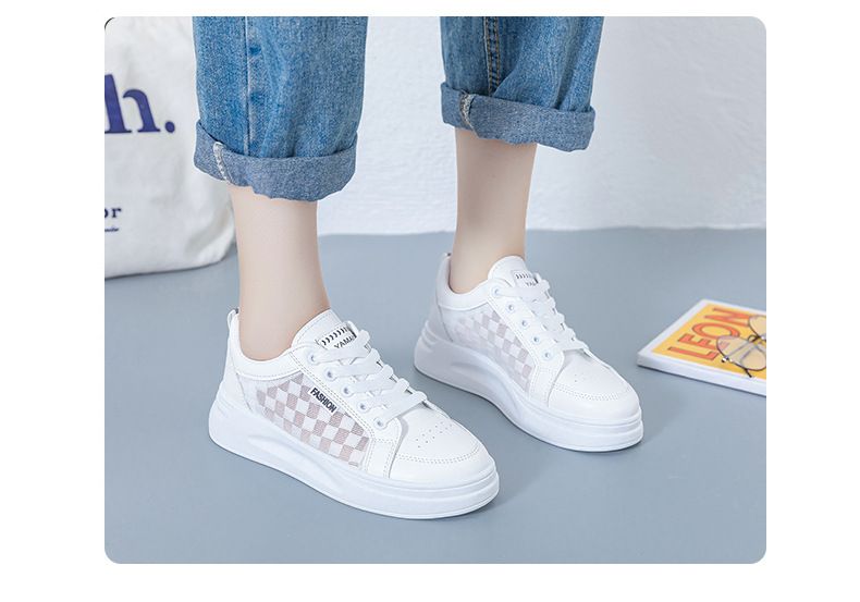【超透氣!】夏季女士薄款網面增高休閒運動鞋【棋盤圖案】一雙