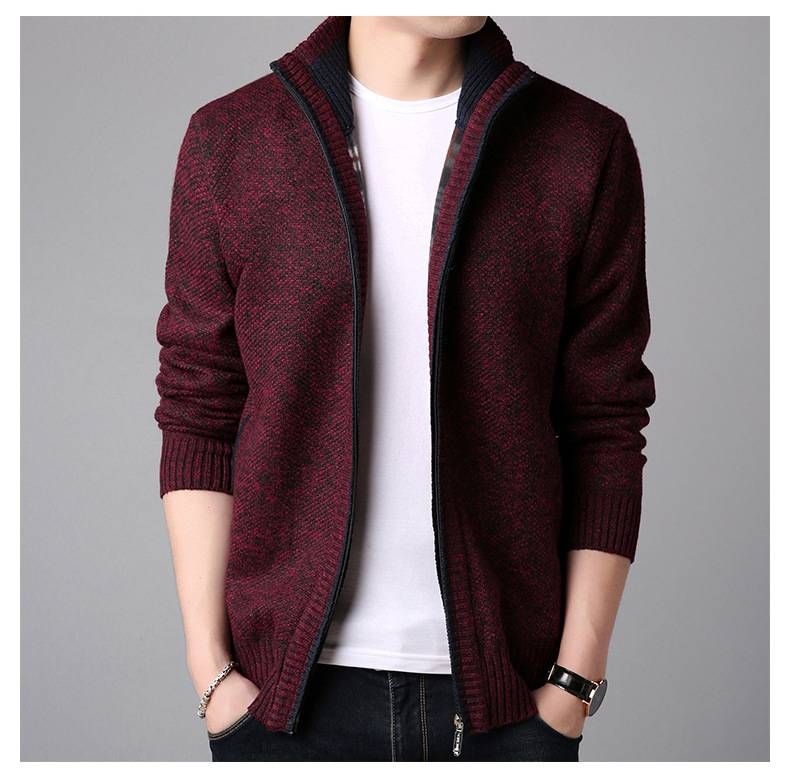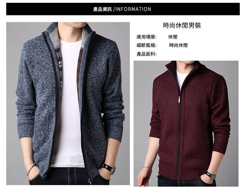 加厚立領男士針織外套【買一送一】【褐色】+【酒紅色】各一件(到手兩件,每件649元!)