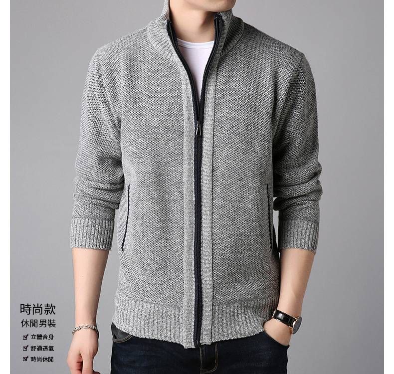 加厚立領男士針織外套【灰色】一件(到手一件,貴在運費)