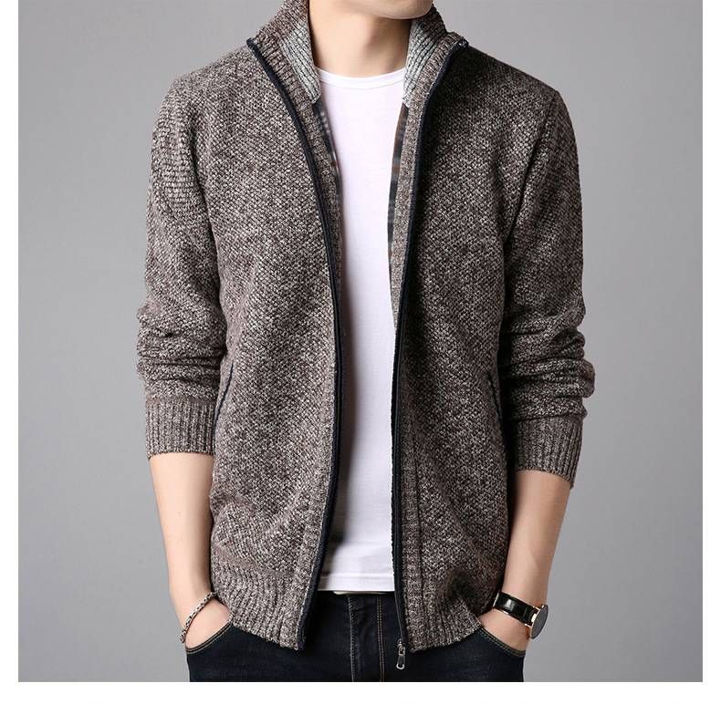 加厚立領男士針織外套【買一送一】【褐色】+【深灰色】各一件(到手兩件,每件649元!)
