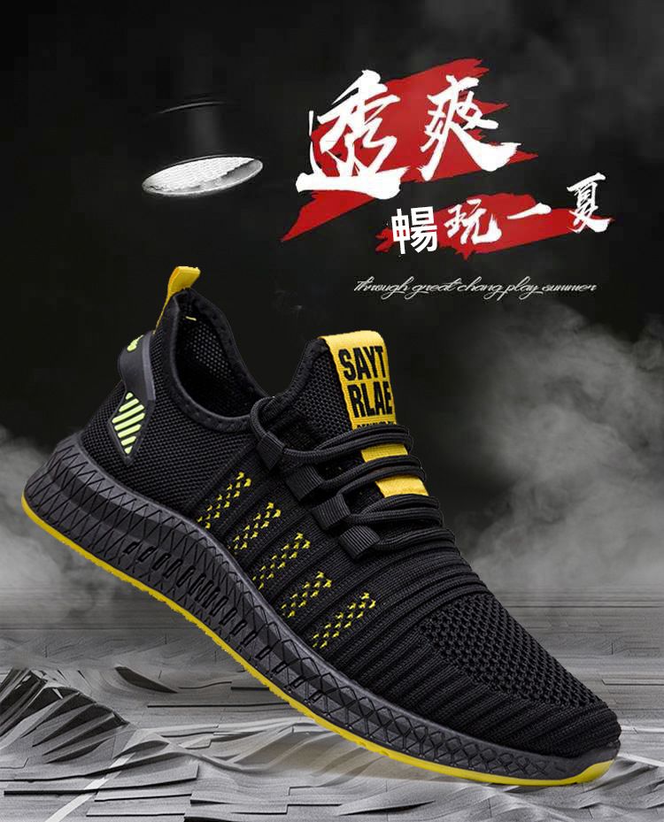 男士夏季軟底防滑輕便透氣休閒鞋【買一送一】2雙【黑黃色】=1298