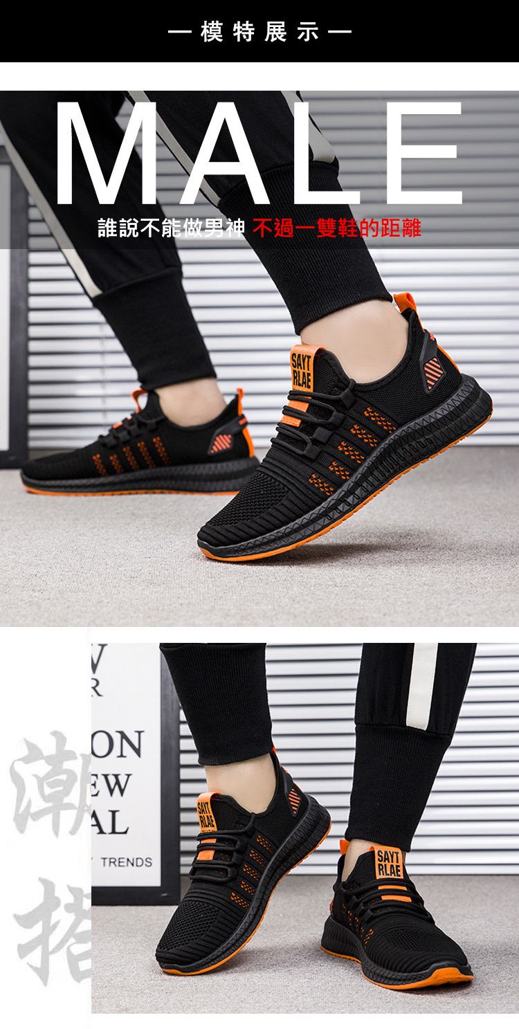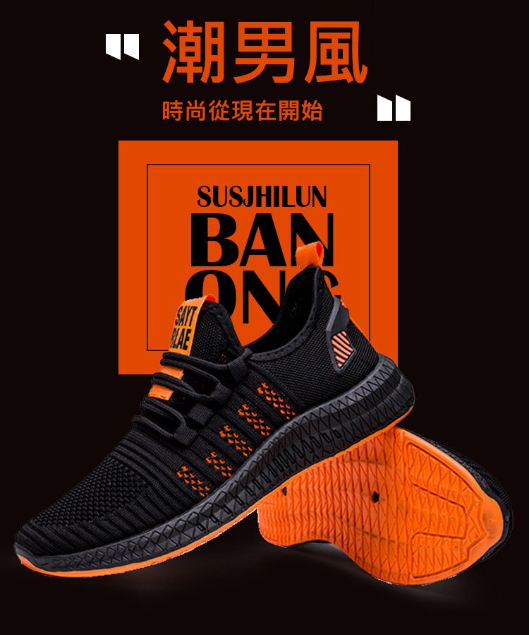 男士夏季軟底防滑輕便透氣休閒鞋買一送一】【橘色】+【黑白色】各一雙=1298