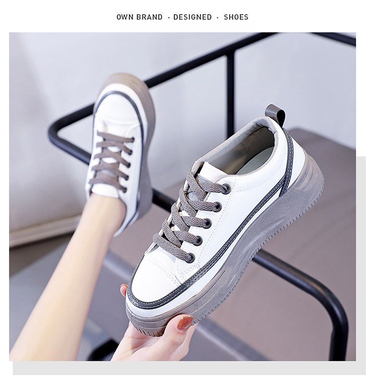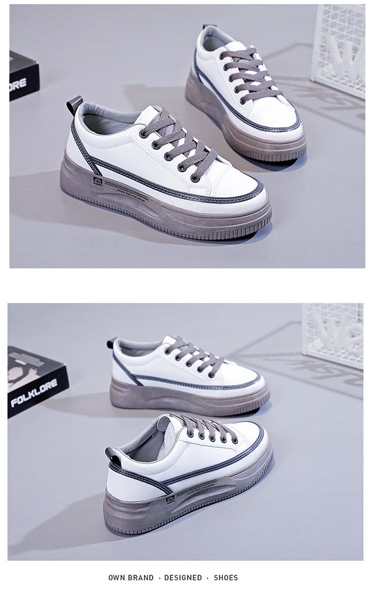 【柔軟!輕彈!增高!】韓版厚底透氣休閒女鞋【白灰】一雙