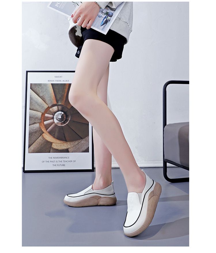 【純色皮革】女士一腳蹬厚底增高休閒小皮鞋【白色】+【黑色】各一雙(優惠400)