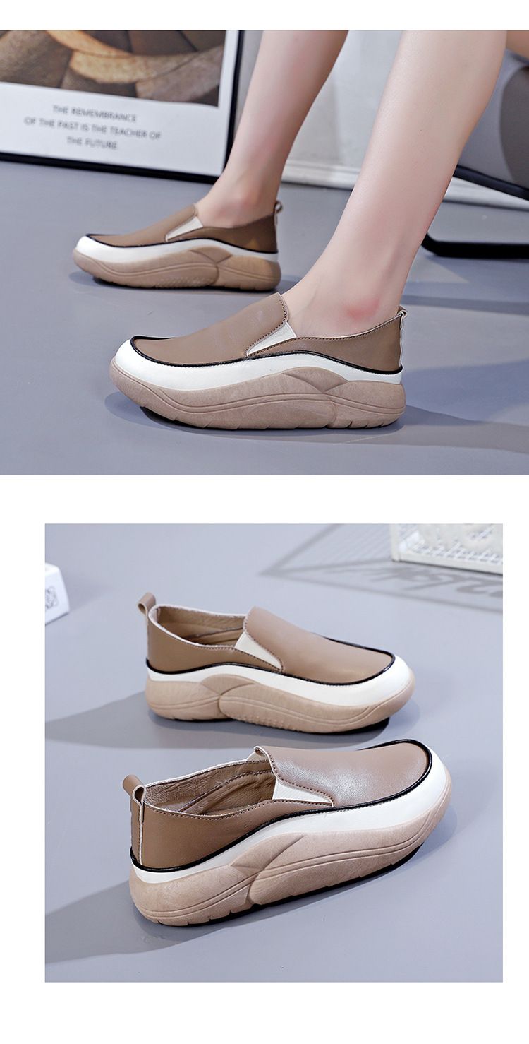 【純色皮革】女士一腳蹬厚底增高休閒小皮鞋【綠色】+【棕色】各一雙(優惠400)