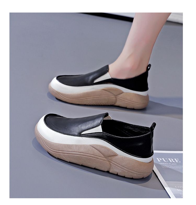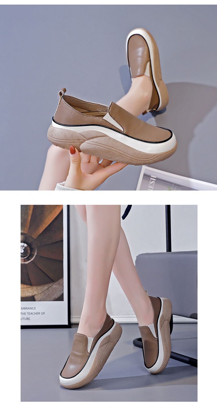 【純色皮革】女士一腳蹬厚底增高休閒小皮鞋【黑色】+【棕色】各一雙(優惠400)