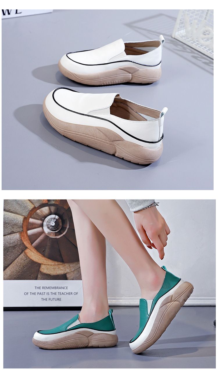 【純色皮革】女士一腳蹬厚底增高休閒小皮鞋【白色】+【綠色】各一雙(優惠400)