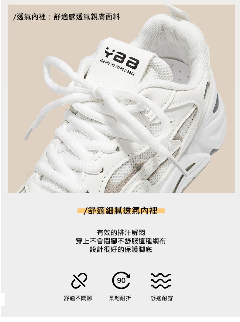 女士網面透氣百搭休閒拼色運動鞋【白蘭色】一雙