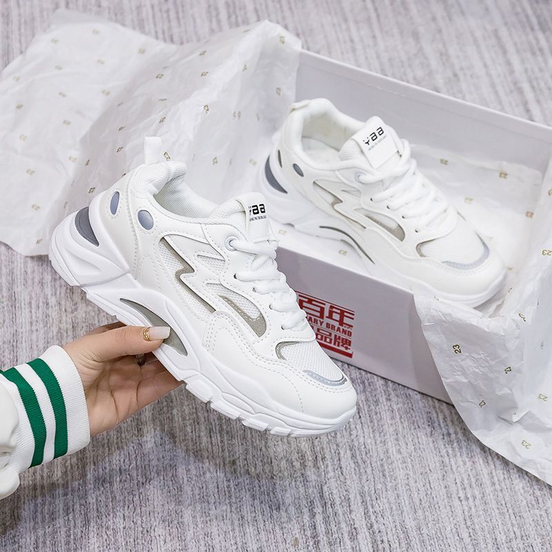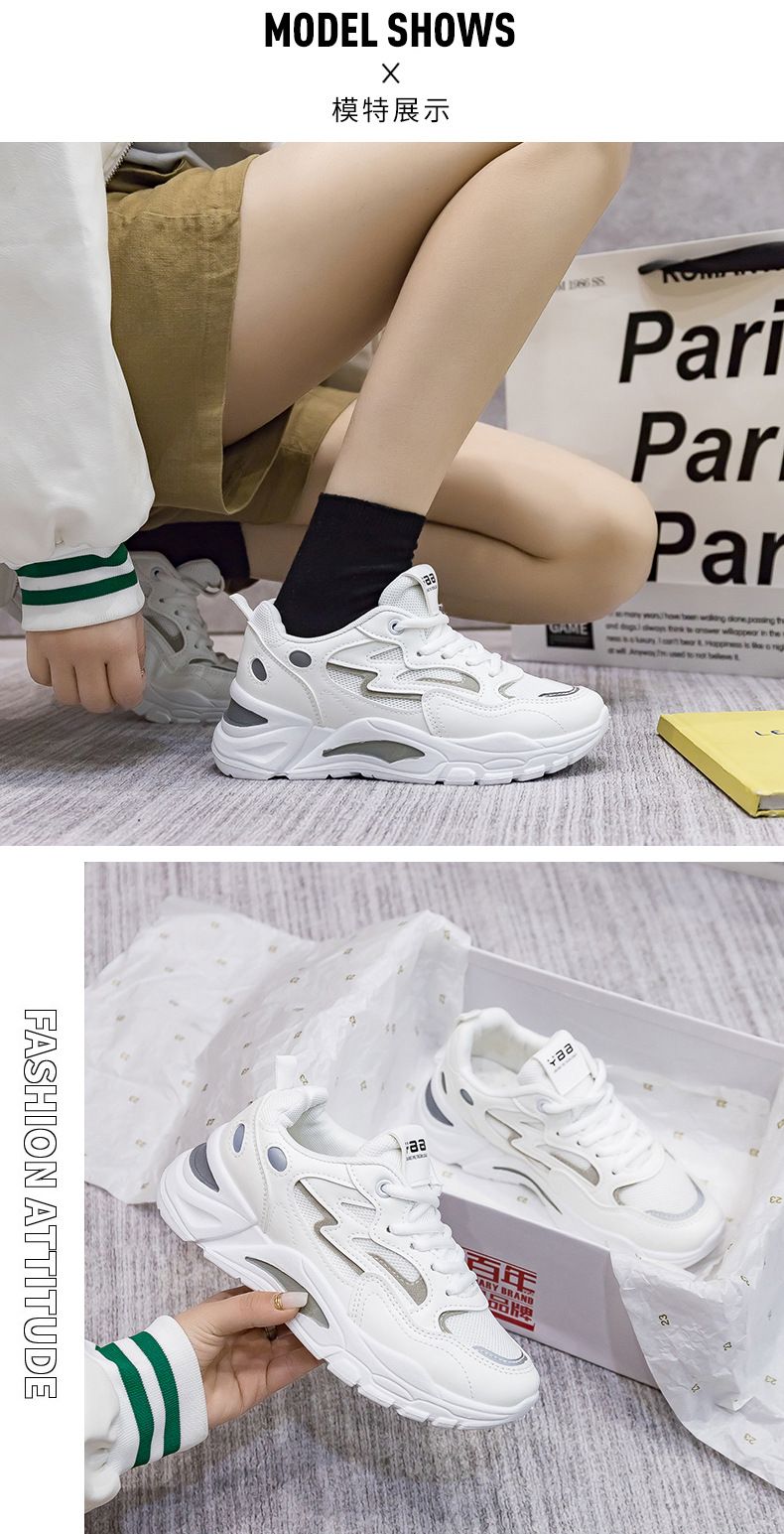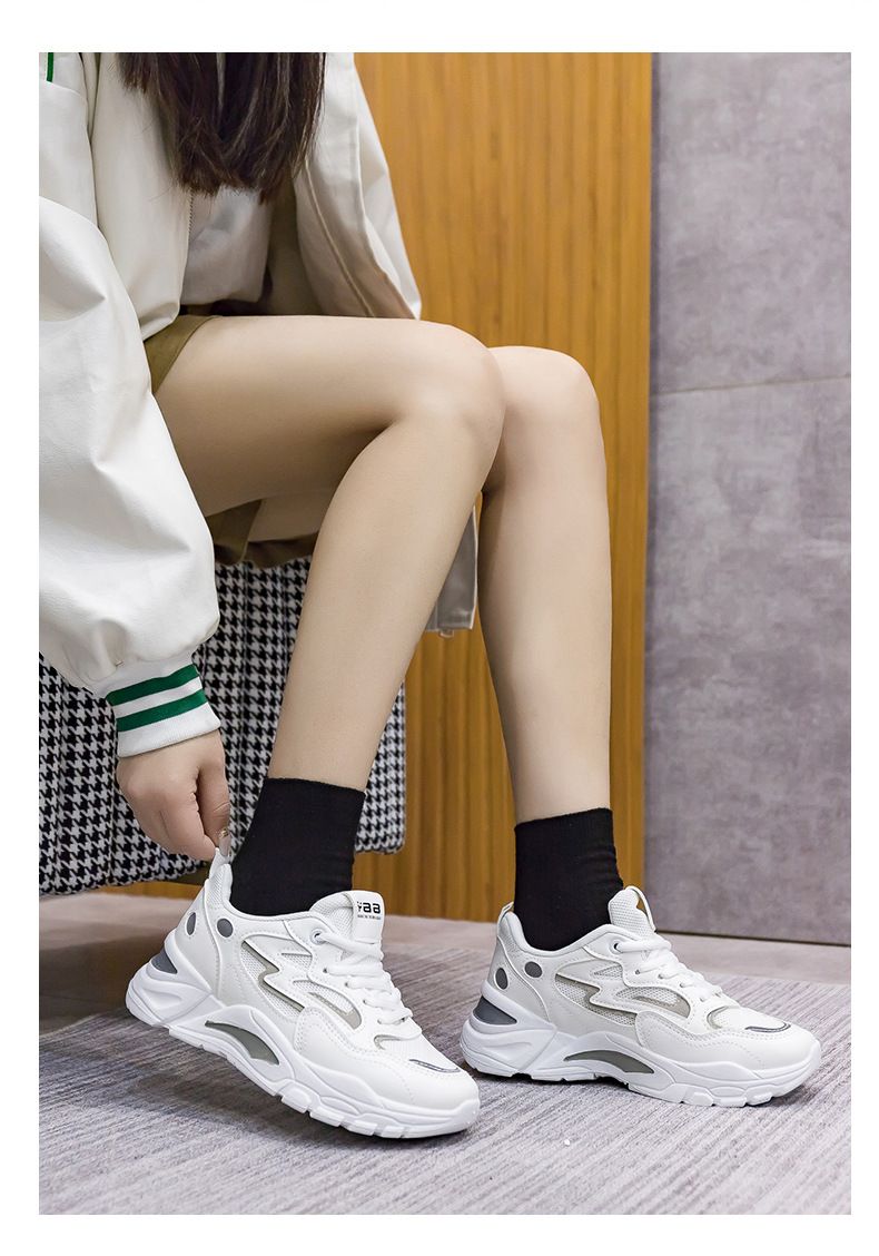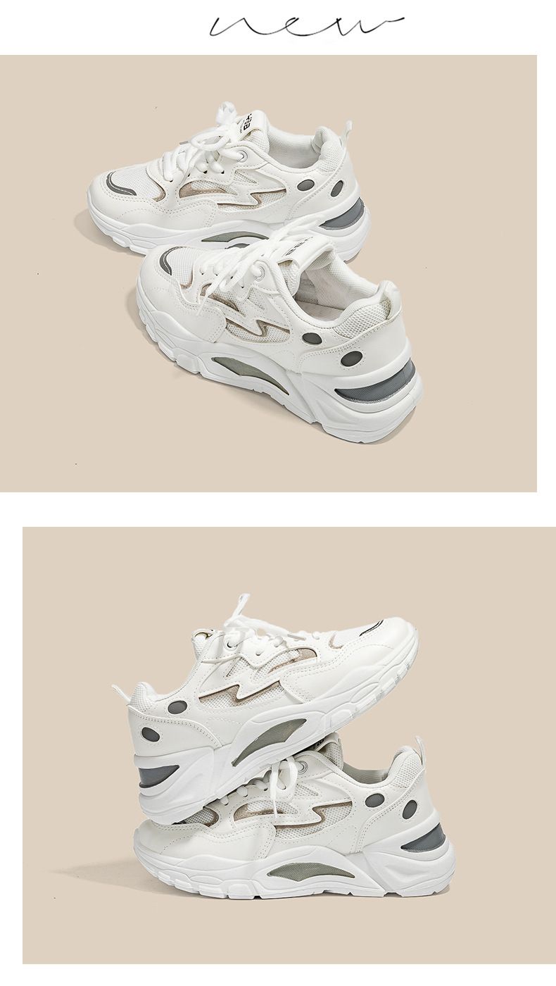 女士網面透氣百搭休閒拼色運動鞋【白灰色】一雙