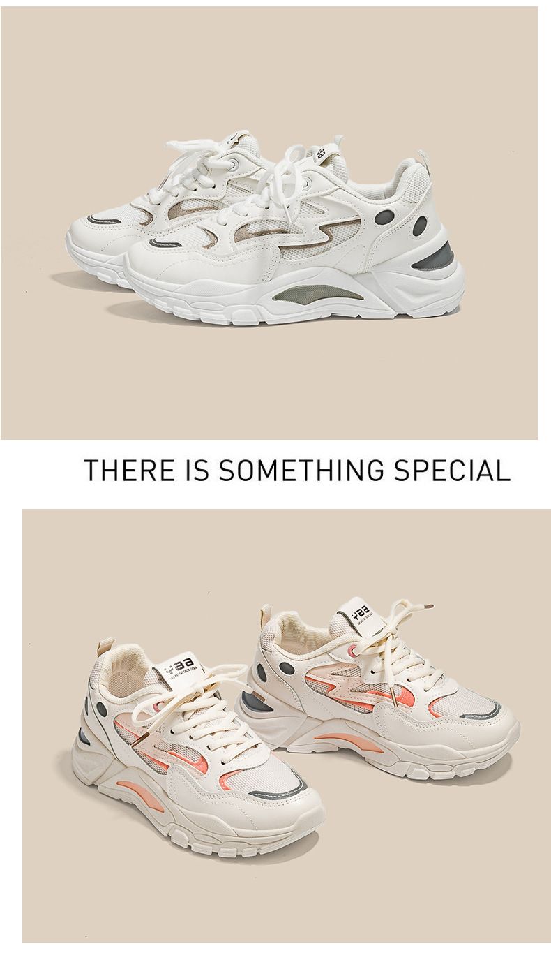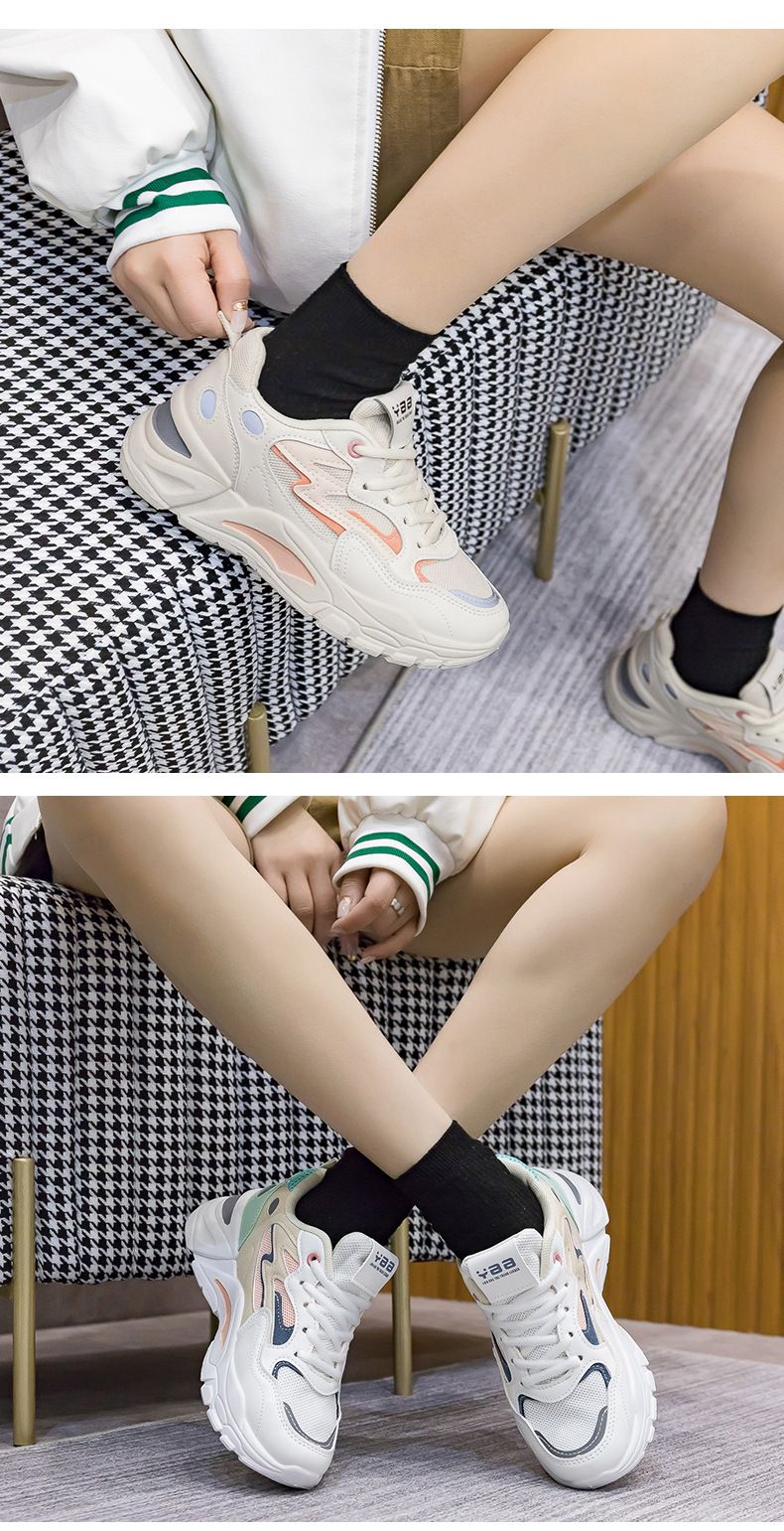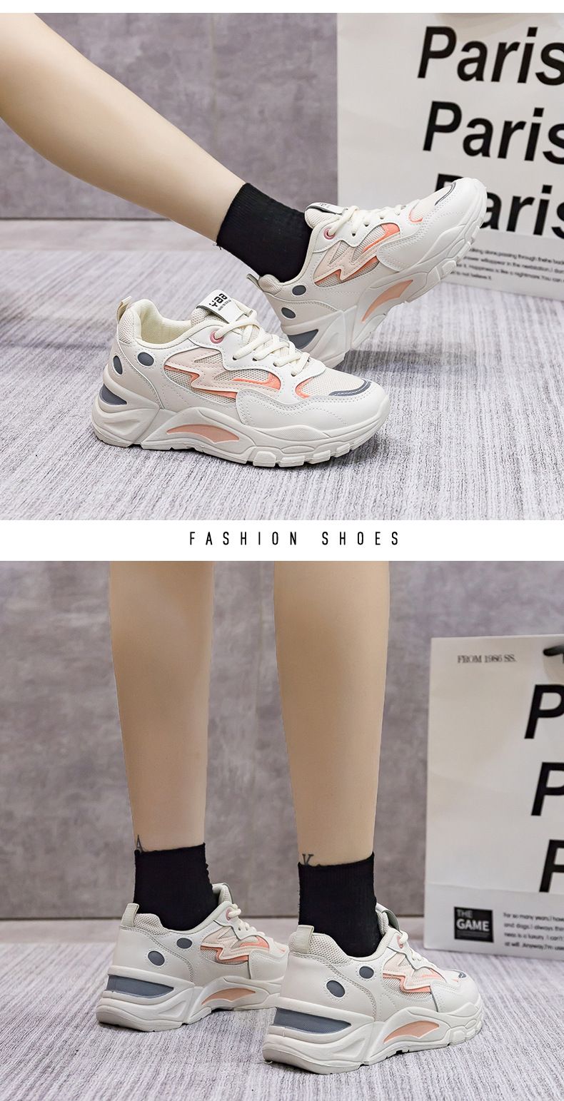 女士網面透氣百搭休閒拼色運動鞋【米粉色】+【白灰色】各一雙(優惠400)
