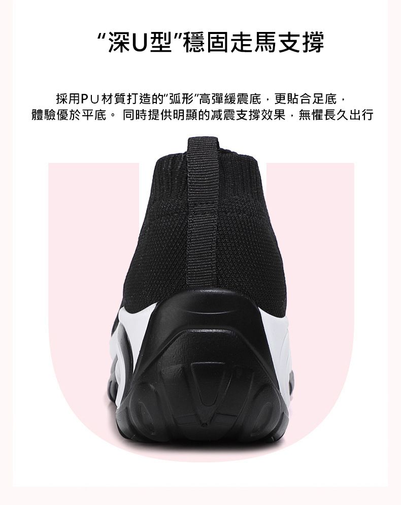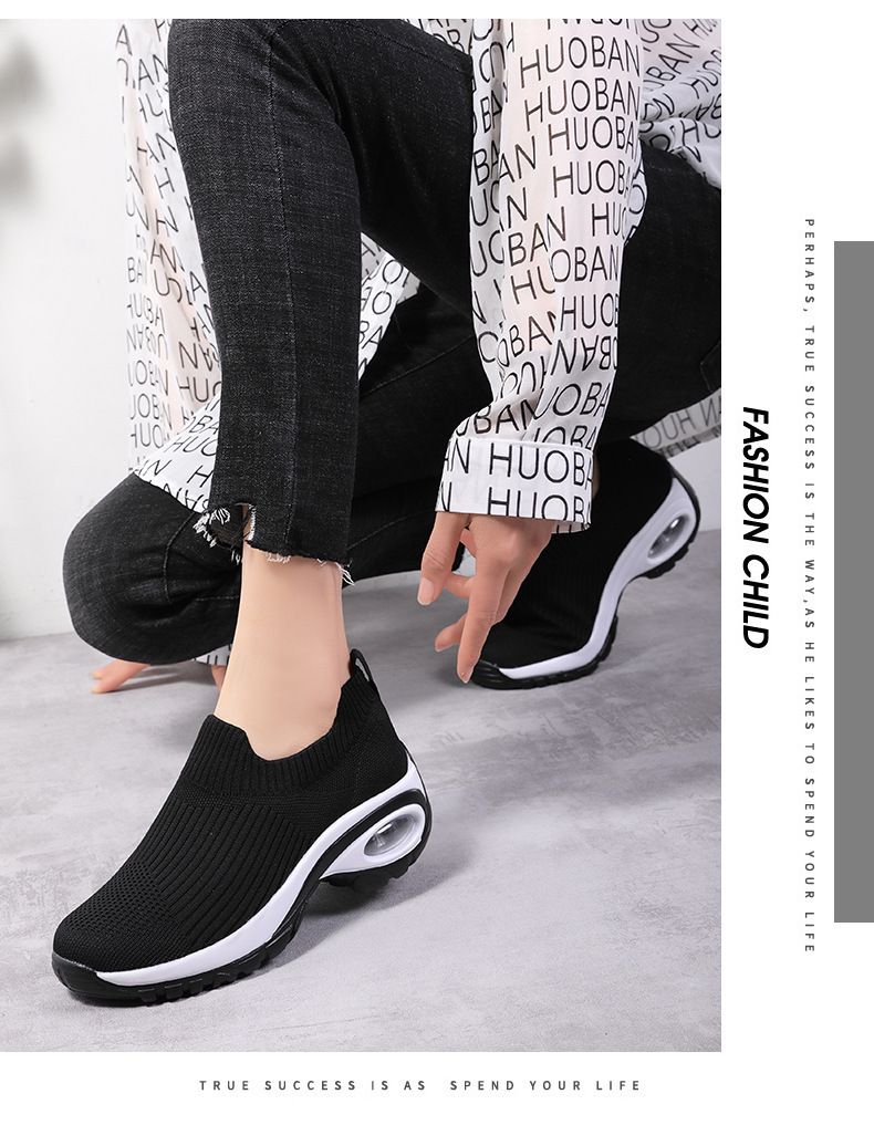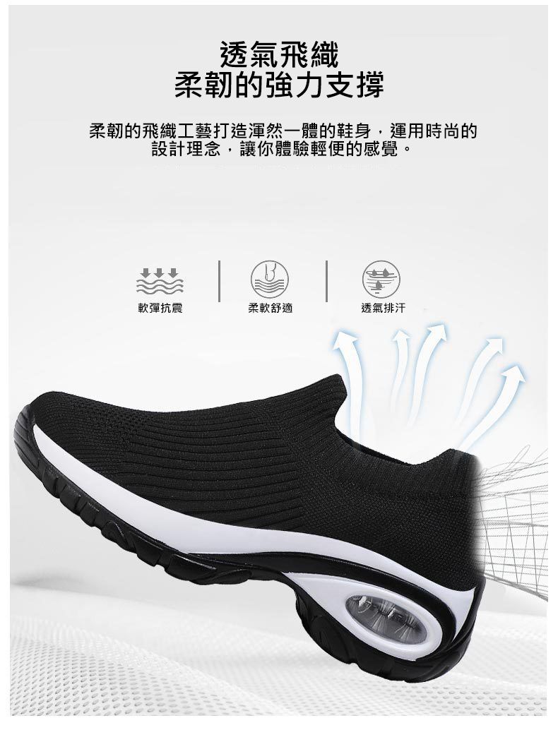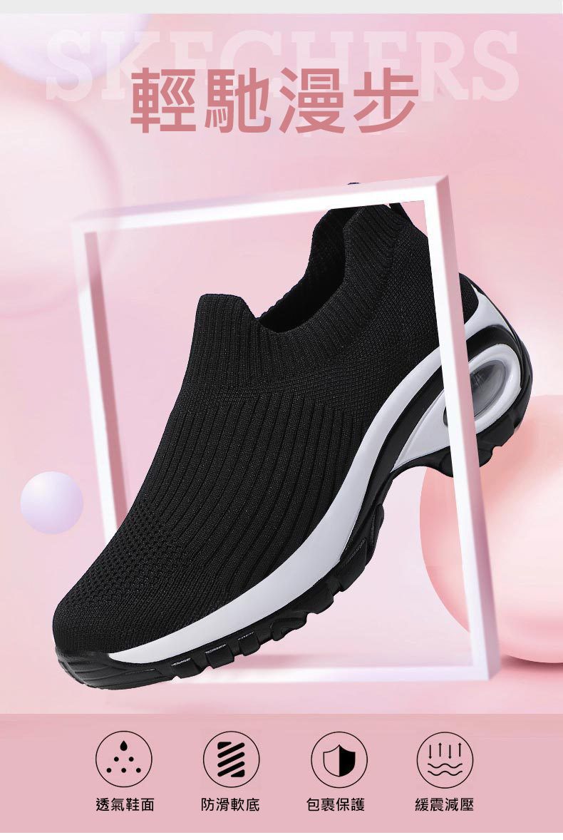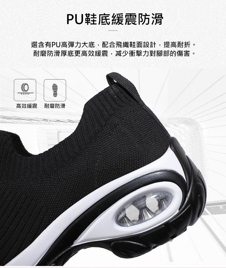 【PU氣墊減震】女士休閒百搭飛織透氣一腳蹬跑步鞋【黑色】一雙