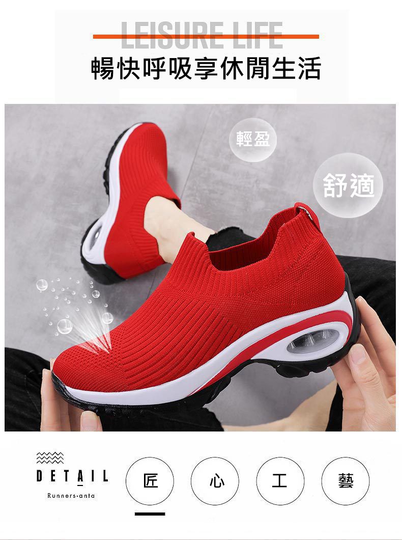 【PU氣墊減震】女士休閒百搭飛織透氣一腳蹬跑步鞋【紅色】一雙