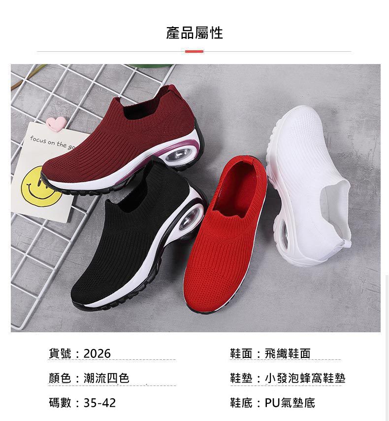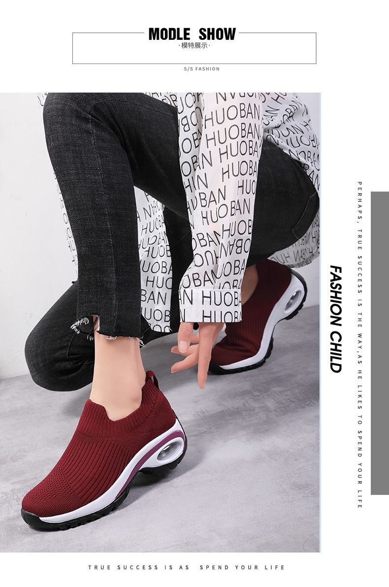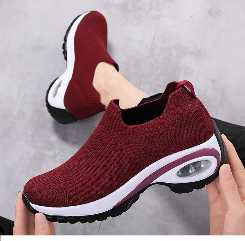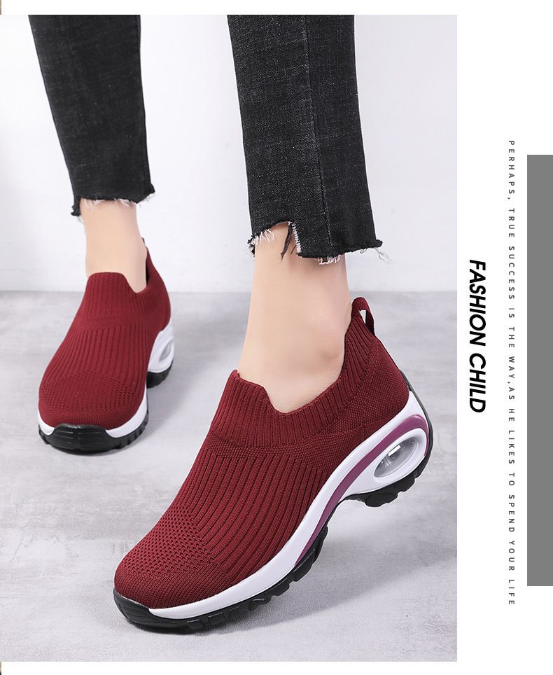 【PU氣墊減震】女士休閒百搭飛織透氣一腳蹬跑步鞋【紅色】+【棕紅色】各一雙(優惠400)